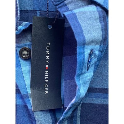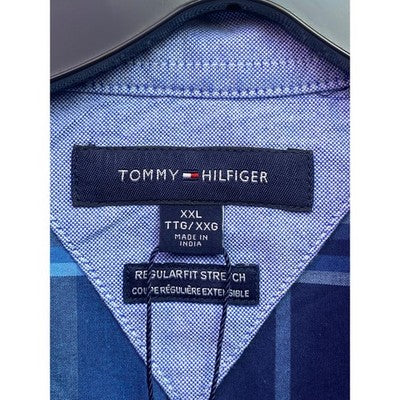 Experience effortless style and comfort with this Tommy Hilfiger short sleeve button-up shirt. The classic plaid pattern in shades of blue brings a timeless appeal to any casual ensemble. Designed with a regular fit and stretch fabric, it offers freedom of movement and a flattering silhouette. The button-down collar adds a touch of polish, making it perfect for a relaxed weekend outing or a casual day at the office.