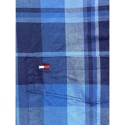 Keywords: Tommy Hilfiger, plaid, short sleeve, button up, men's shirt, casual, stretch, regular fit, blue, classic, summer, weekend, work