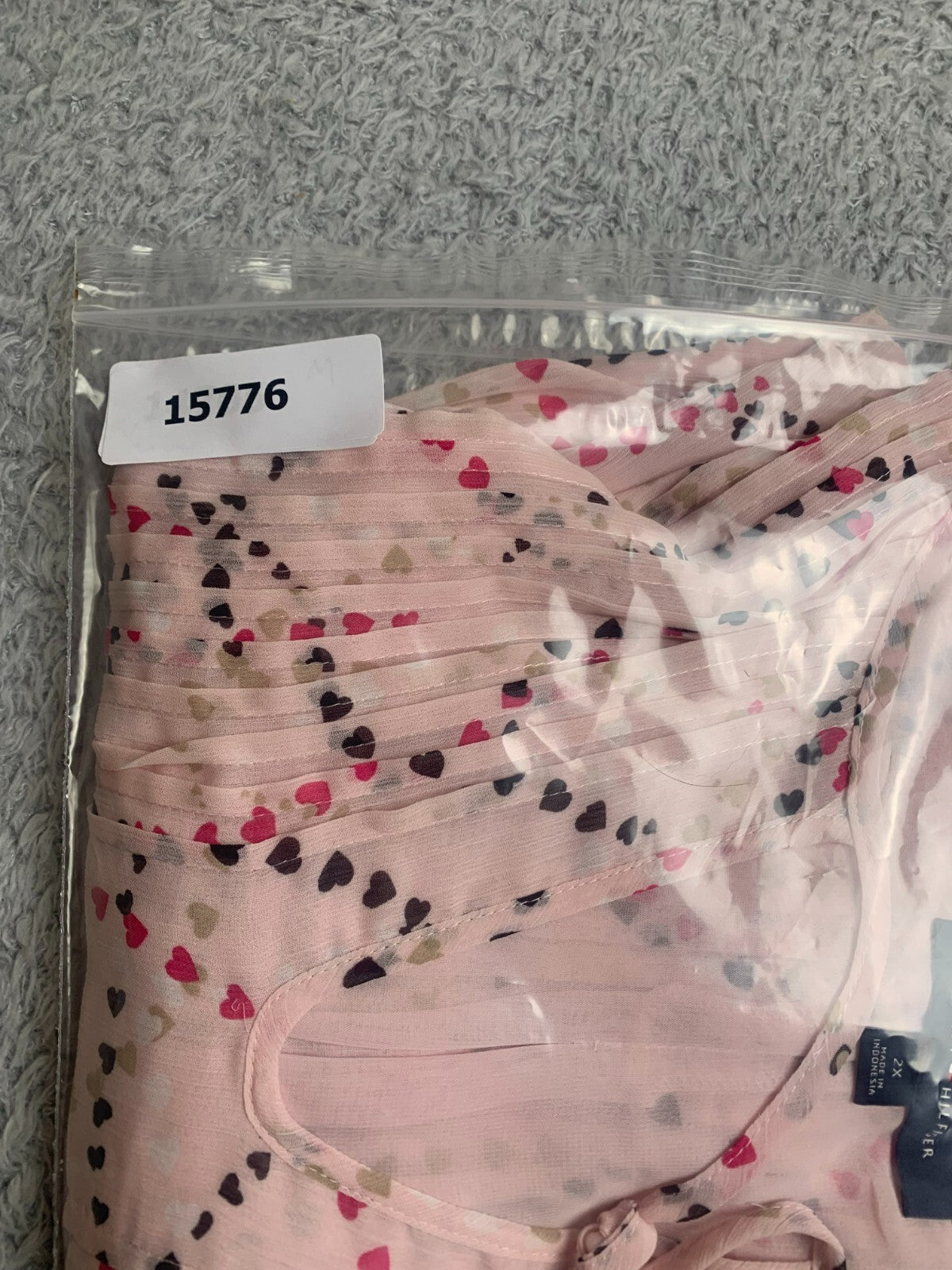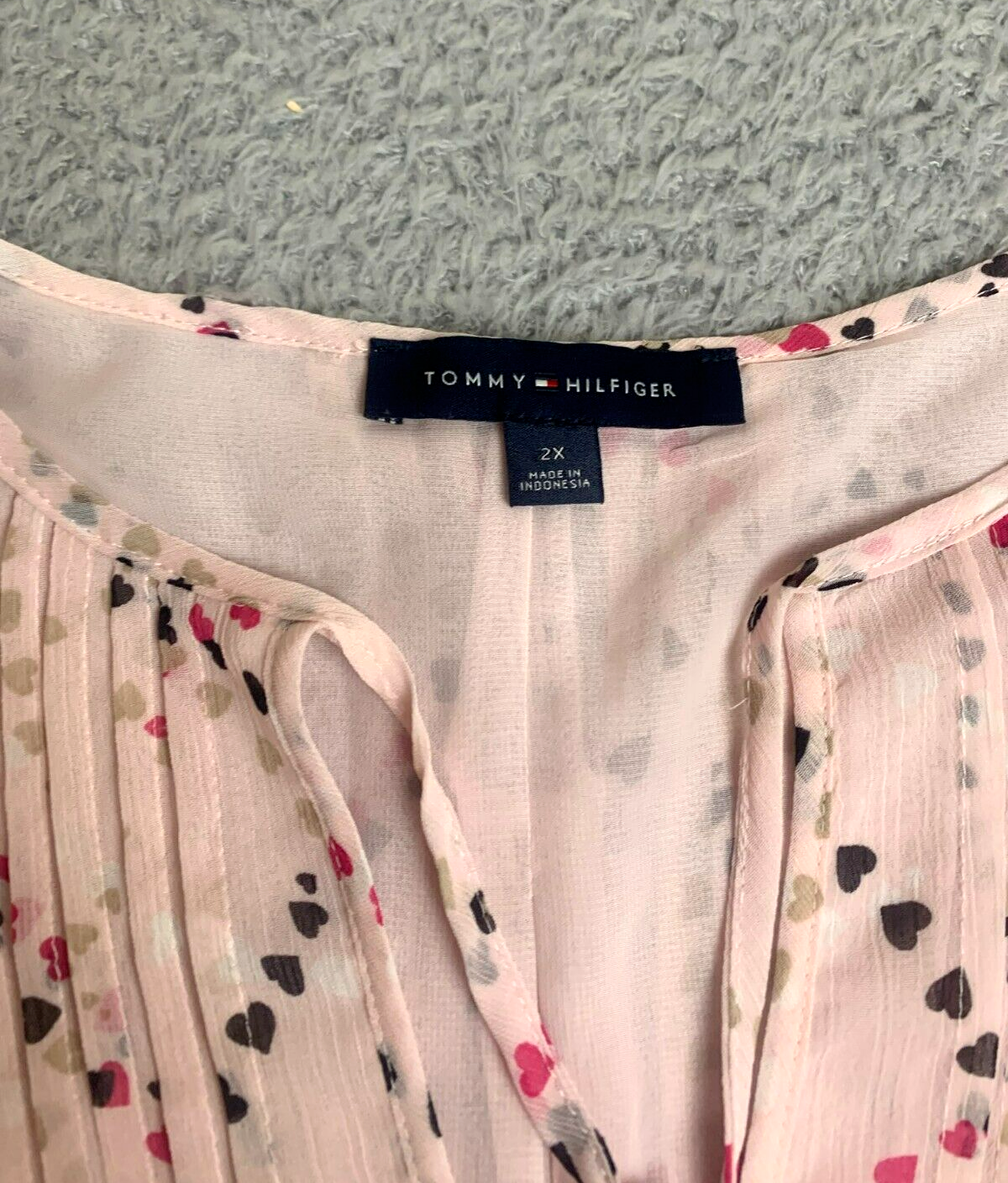 Tommy Hilfiger Shirt Womens 2X Peach Pastel Soft Chic AOP Heart Blouse Plus Lady