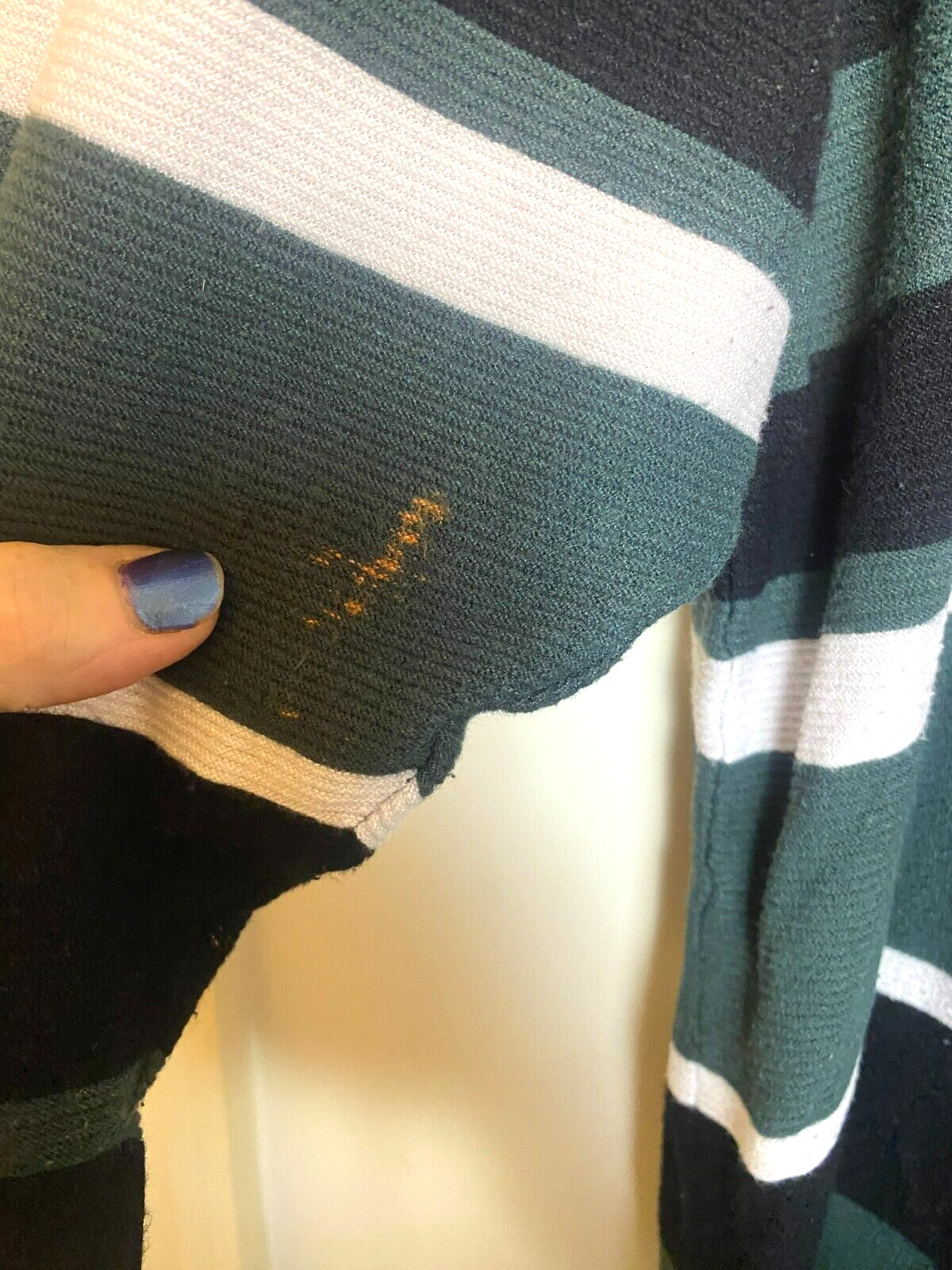 If we noticed any damage to this item, stains, holes, etc... it will be shown in photos or noted in the description or title on this listing.