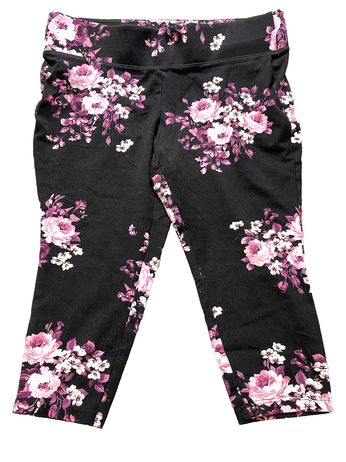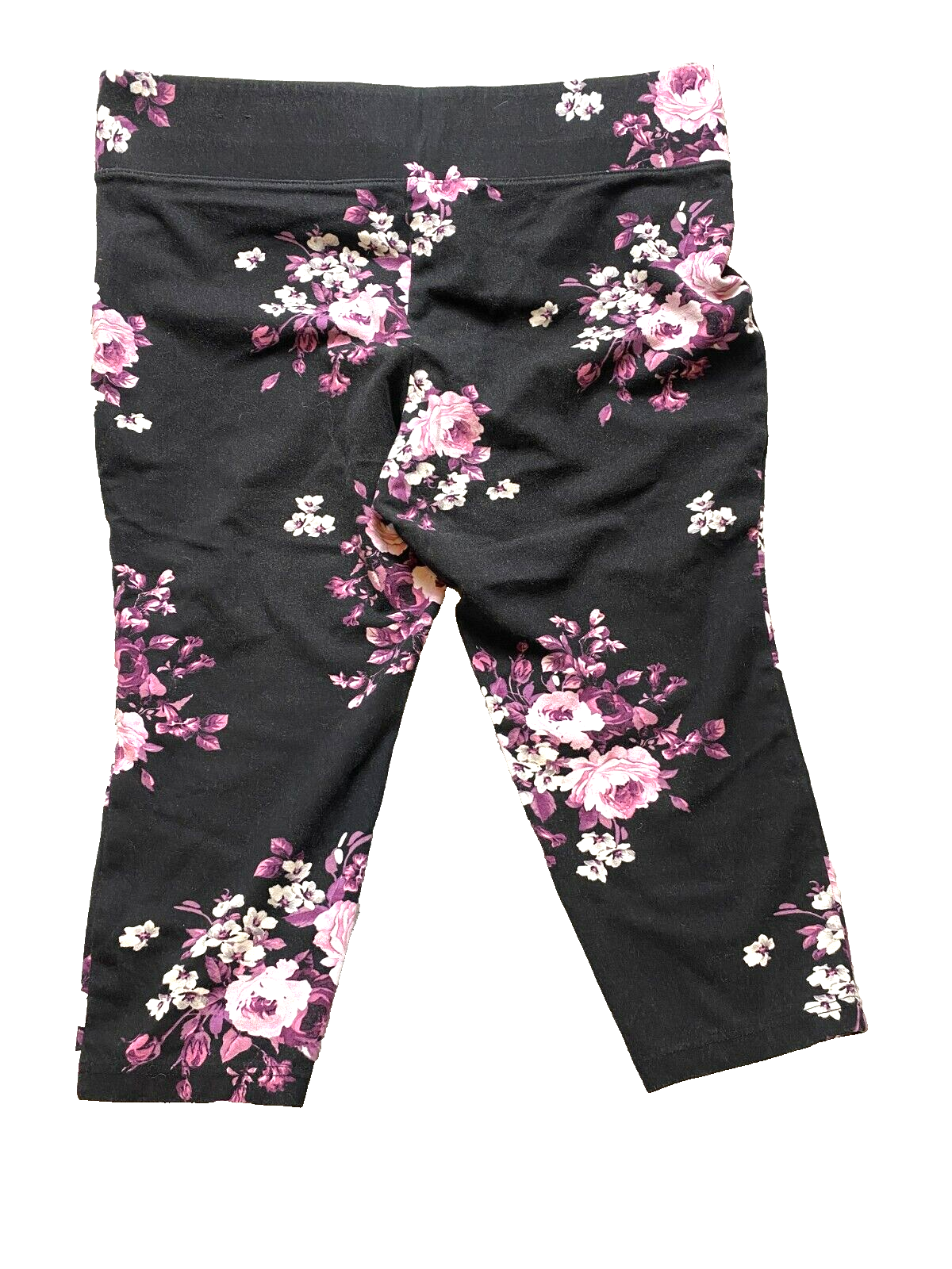 Torrid Leggings Womens 2R (40x19) Black Cropped AOP Flower Rayon Nylon Spandex
