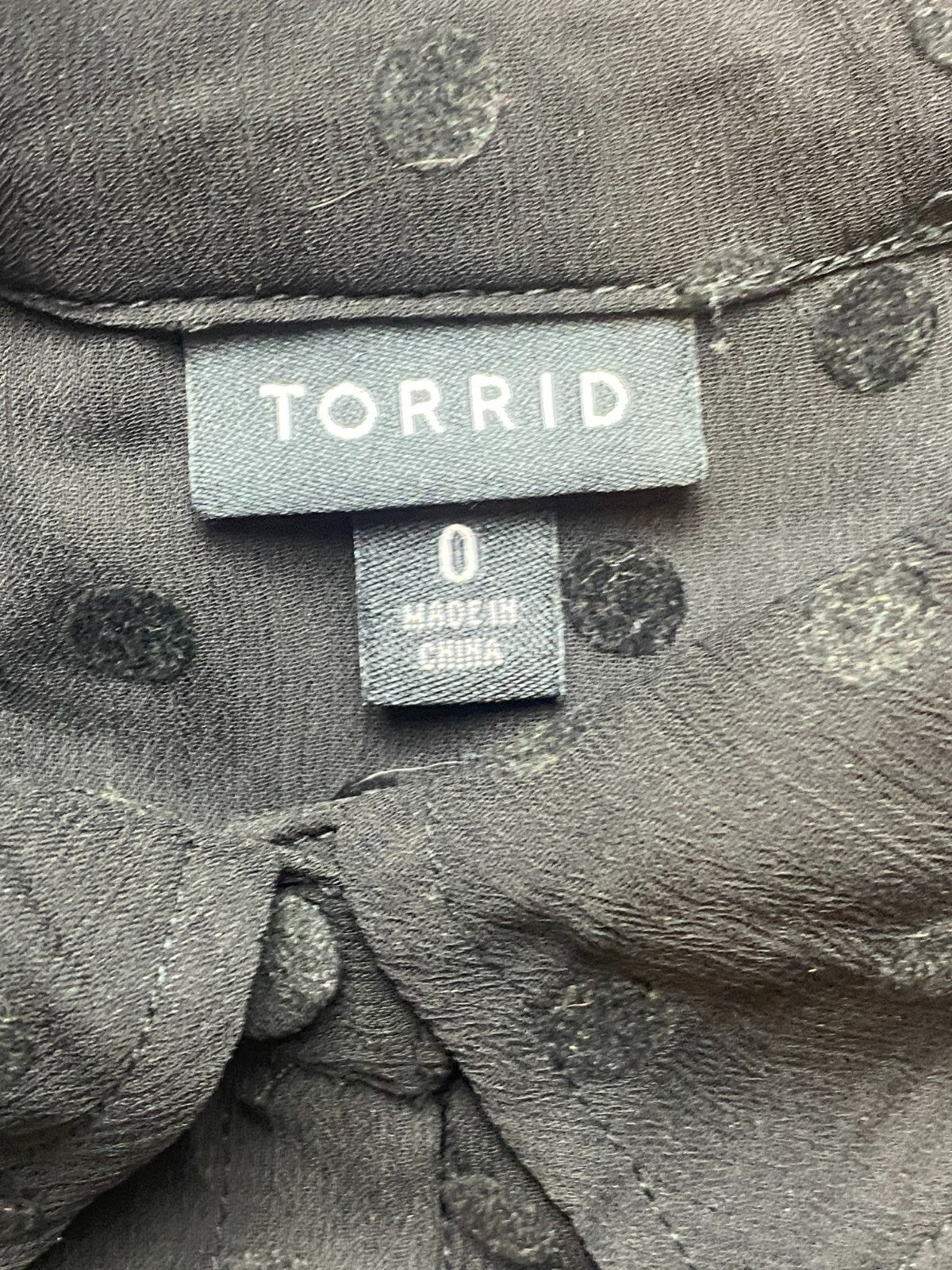 Torrid Shirt Womens 0 Large Black Velvet Polka-Dot Sheer Lined Button Up Blouse