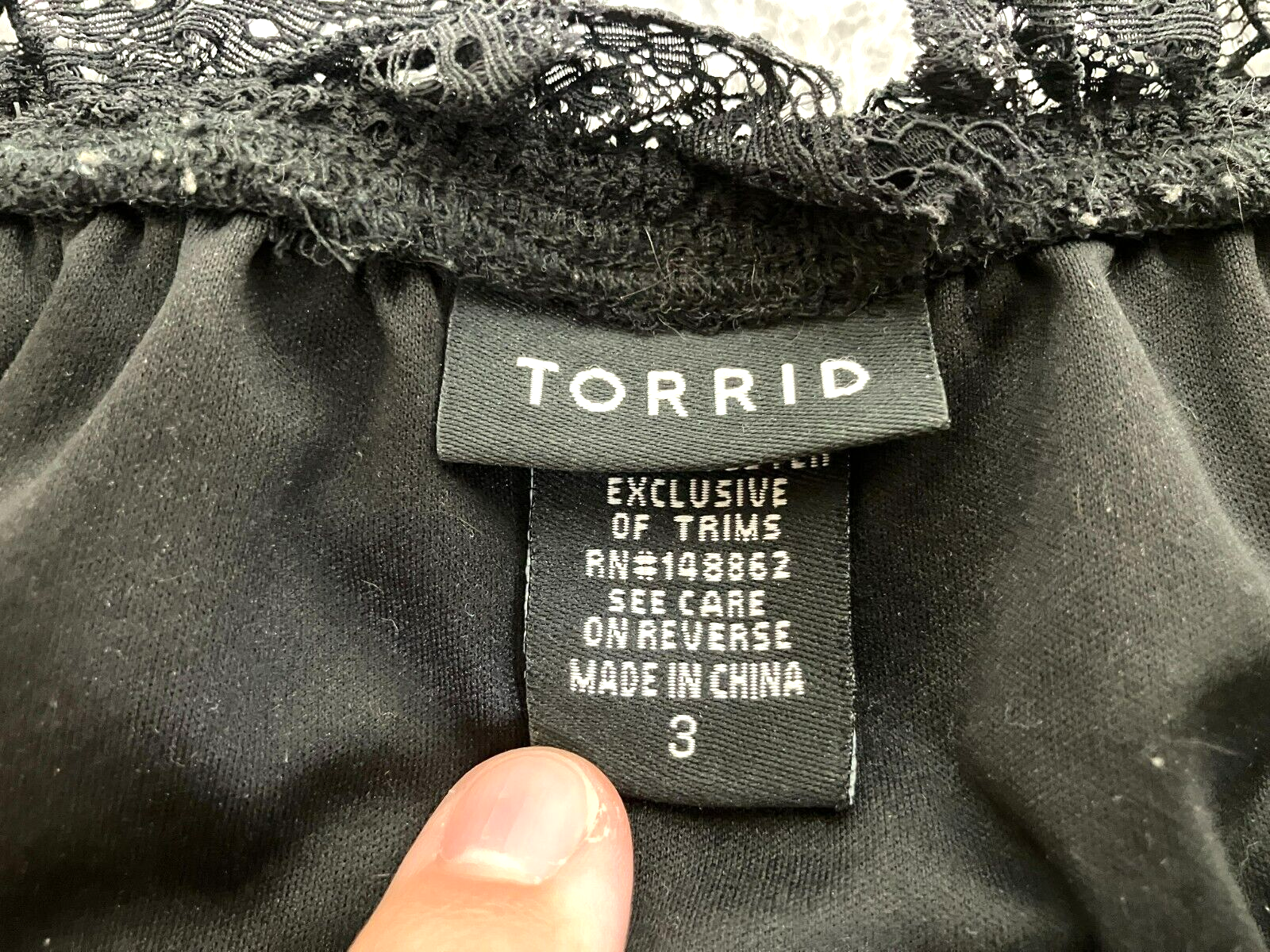 Torrid Shirt Womens 3 Black Lace Lined Nylon Spandex Stretch Boho Blouse Ladies