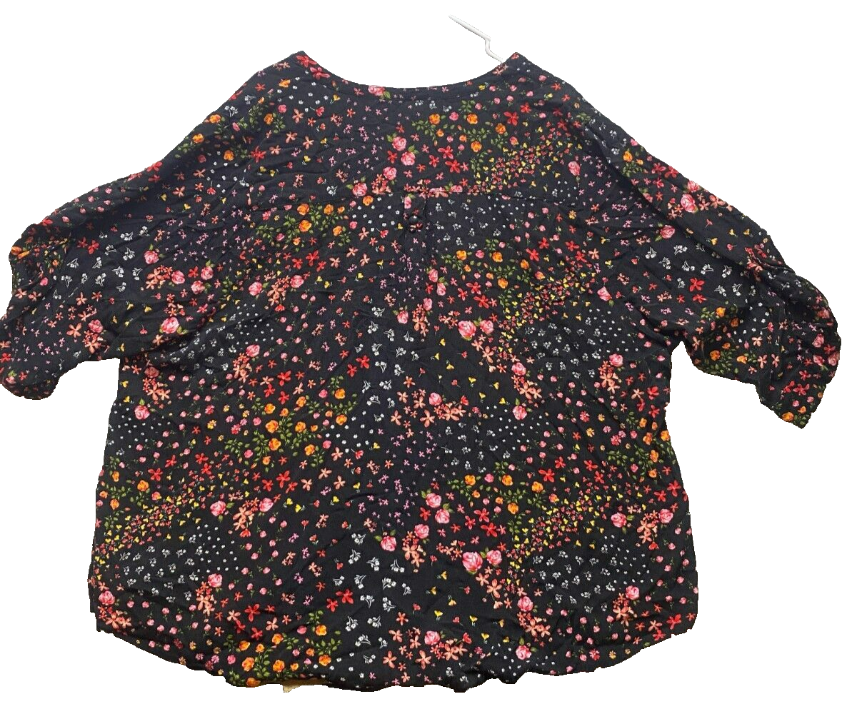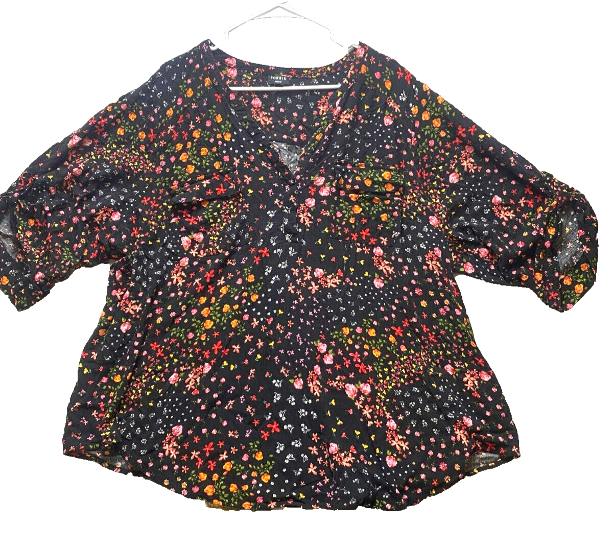 Torrid Shirt Womens 5 5X Black AOP Flower Rayon Spandex Boho Peasant Blouse Plus