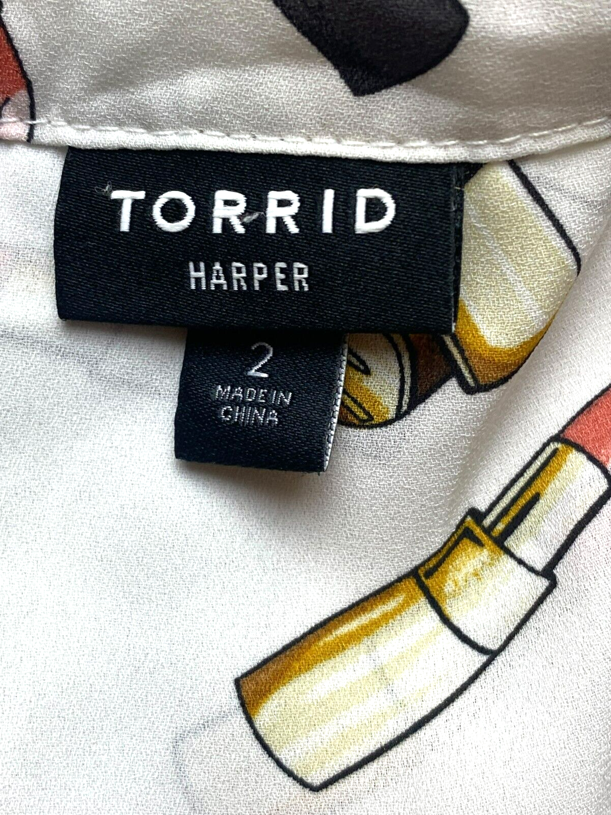 TORRID x Harper Shirt Womens 2 White AOP Lipstick Hippie Lightweight Plus Ladies