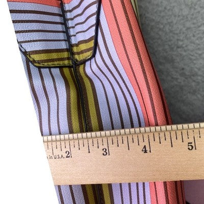 Discover a vibrant duo designed to elevate your everyday style. This set includes a chic tote bag and a coordinating cosmetic pouch, both adorned with a playful multicolored stripe pattern that adds a burst of personality to any outfit. The tote offers ample space for your essentials, while the versatile pouch keeps smaller items organized. Carry them together for a coordinated look or separately to suit your needs. Perfect for daily errands, weekend getaways, or a stylish addition to your vacation wardrobe.