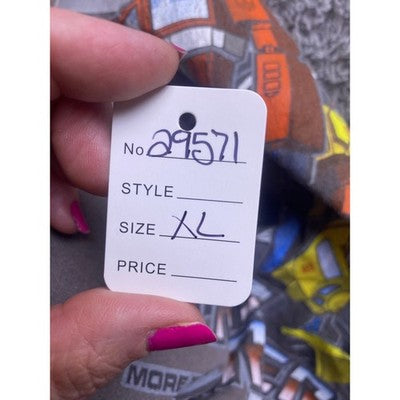 Unleash your inner child with this eye-catching Transformers t-shirt, a nostalgic tribute to the iconic cartoon series. The shirt features a vibrant graphic print showcasing Optimus Prime and other beloved Autobots, rendered in striking detail against a neutral gray backdrop. The design captures the essence of the classic Transformers aesthetic, making it a standout piece for fans and collectors alike. Its comfortable fit and soft fabric make it ideal for casual wear, while the bold graphic adds a touch of retro flair to any outfit. Perfect for comic conventions, movie nights, or simply expressing your love for the Transformers universe.