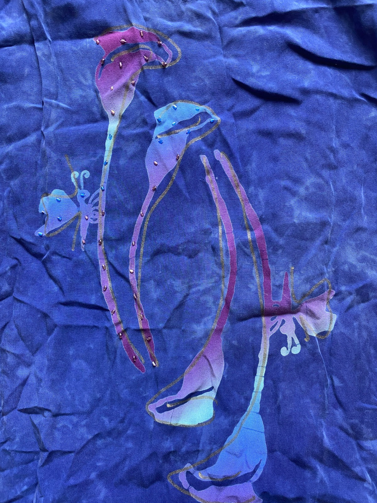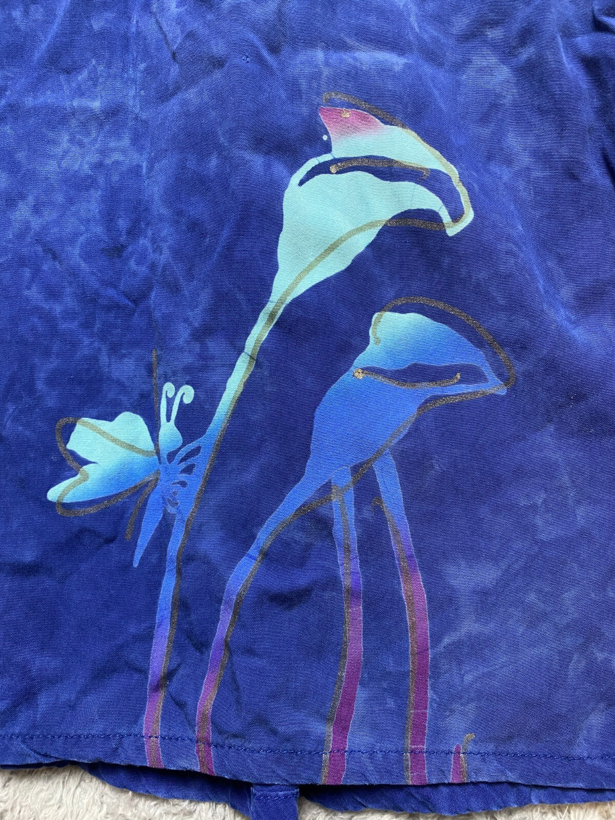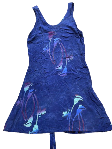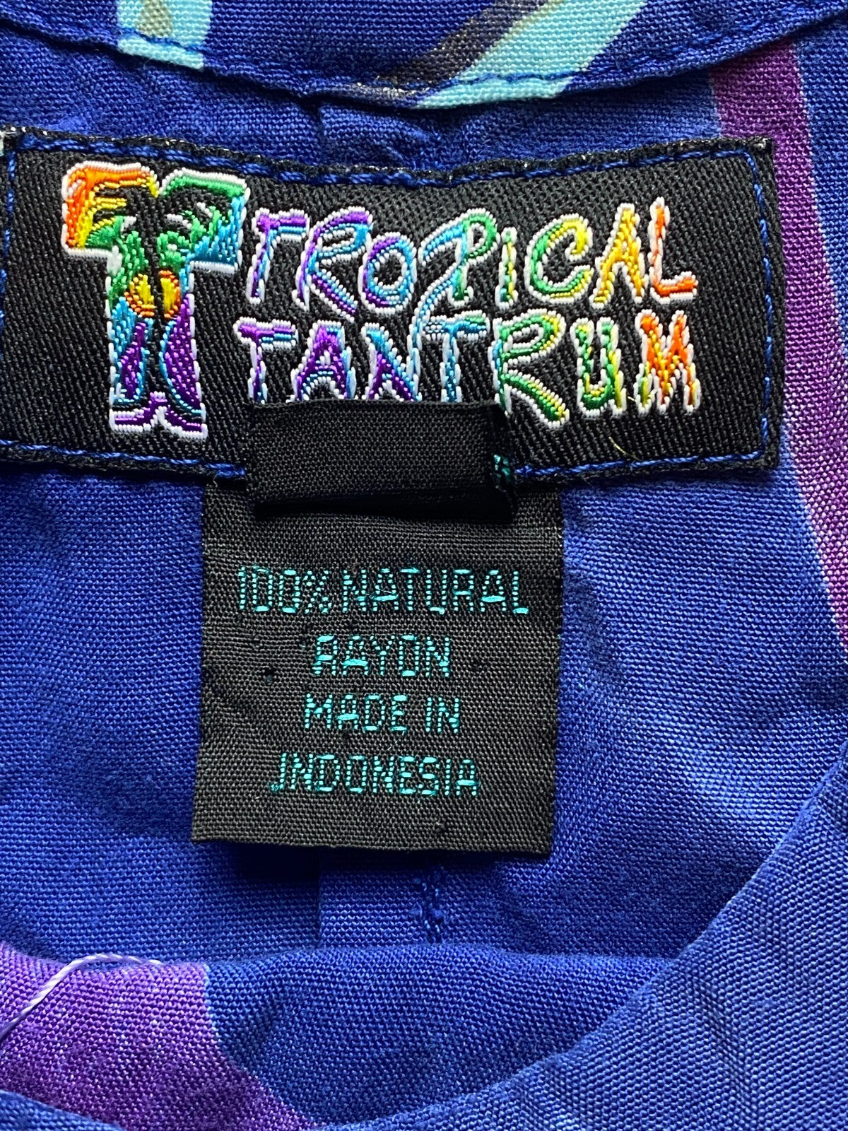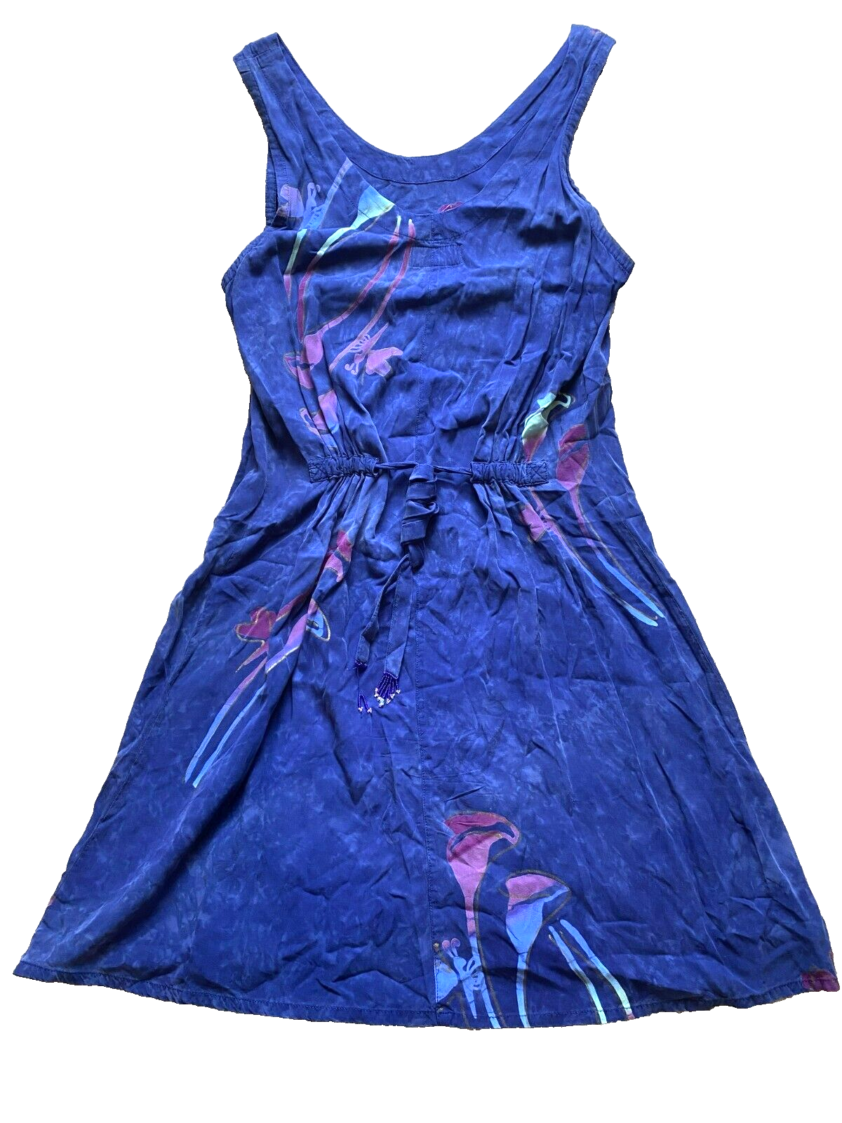 Tropical Tantrum Dress Womens Medium Blue Whimsical Rayon Boho Hawaiian Sundress