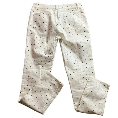 Keywords: polka dot jeans, high waist jeans, womens jeans, cream jeans, casual pants, printed jeans, Everyday, black and white jeans, straight leg jeans, dress pants, fashion jeans, cute jeans, stylish pants, polka dot pants