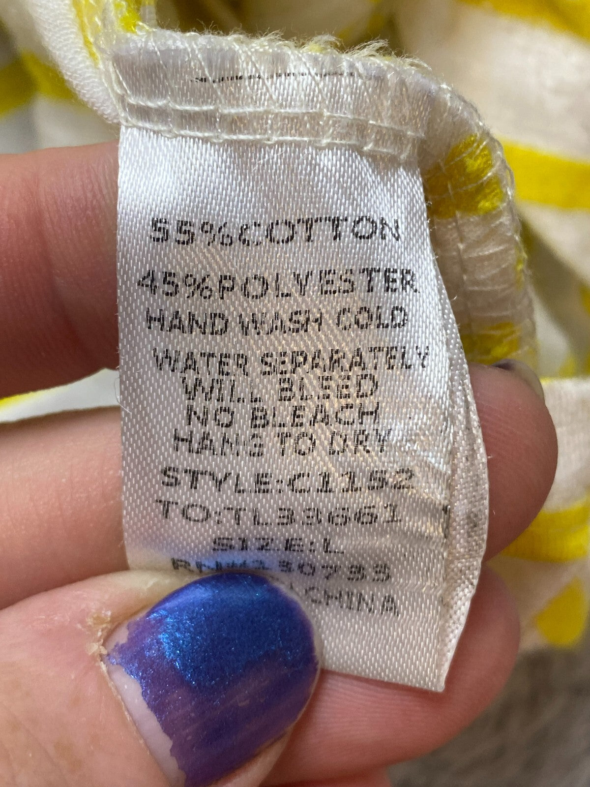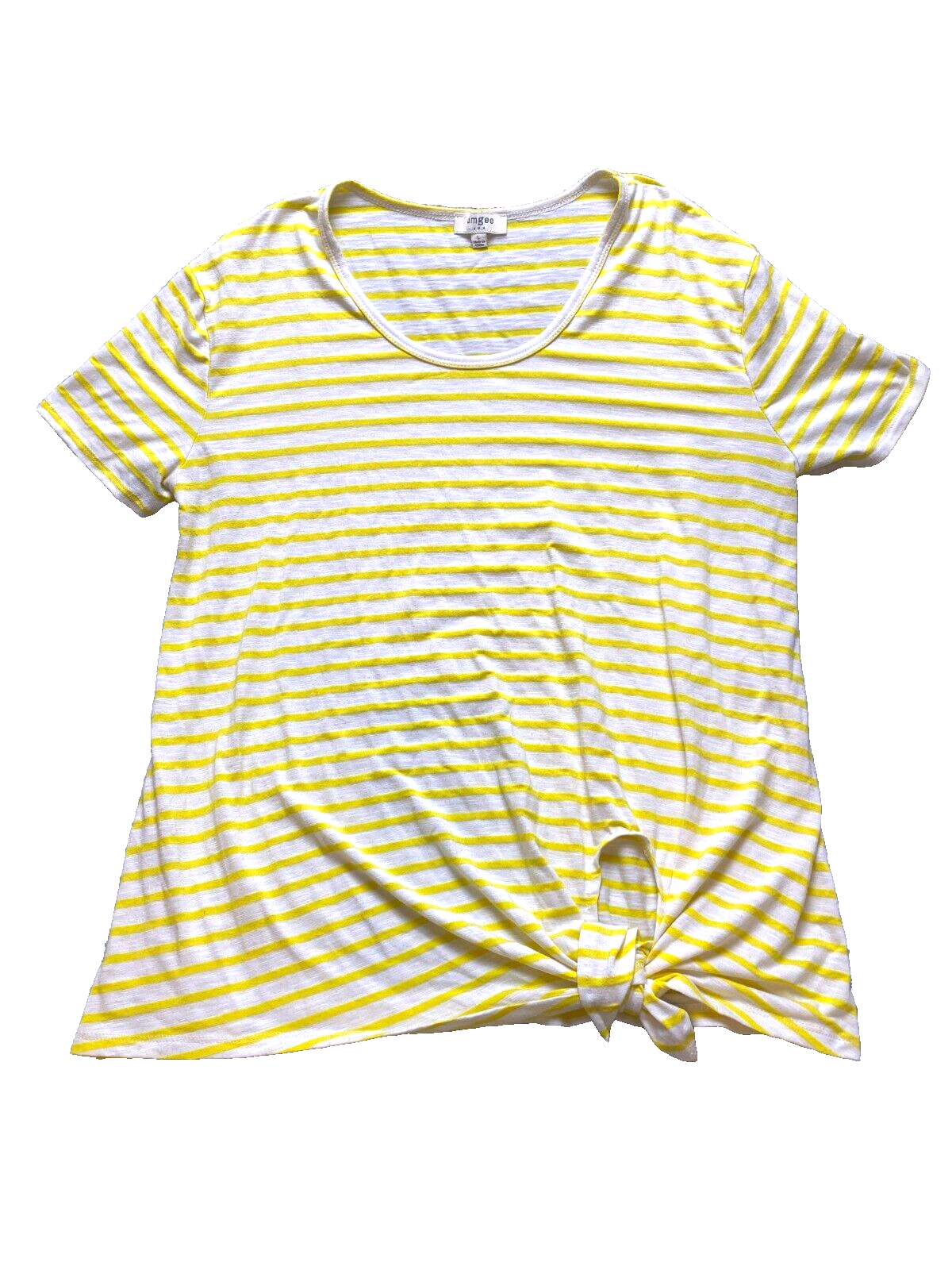 Umgee USA Shirt Womens Large Yellow White Striped Oversized Tie Knot Ladies