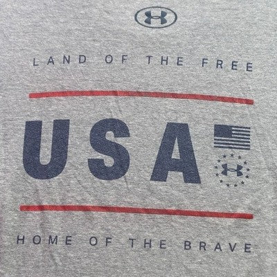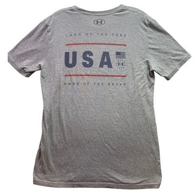 Keywords: Under Armour, Men's T-Shirt, Patriotic, USA, Land of the Free, Graphic Tee, Athletic, Comfortable, Casual, Sportswear, American Flag, Fourth of July, Under Armour T-Shirt, Crew Neck