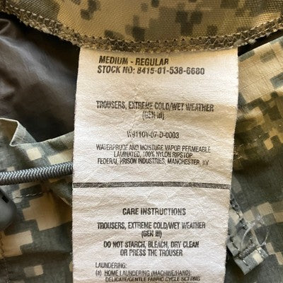 Keywords: US Army Issue, Gore-Tex, Trousers, Extreme Cold Weather, Wet Weather, Digital Camo, Military, Tactical, Hiking, Camping, Outdoor, Waterproof, Breathable, Medium Regular