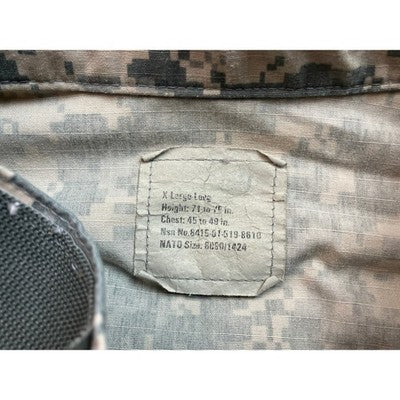 Command attention in this authentic US Army Combat Uniform (ACU) jacket. This jacket stands ready to blend seamlessly into various environments, offering unparalleled versatility and practicality. It boasts a classic military design with a digital camouflage pattern, multiple pockets for secure storage, and adjustable cuffs for a personalized fit. Crafted for durability and comfort, this jacket ensures you're prepared for any mission, be it tactical operations, outdoor adventures, or casual everyday wear. Imagine yourself hiking through rugged terrain, participating in a paintball match, or simply making a bold fashion statement in this iconic piece of military apparel.