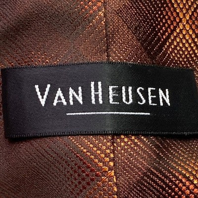 Elevate your formal attire with this sophisticated Van Heusen tie, boasting a rich brown hue interwoven with striking orange plaid accents. The subtle sheen of the silk fabric catches the light beautifully, adding a touch of refined elegance to your ensemble. Designed for the discerning gentleman, this tie features a stain-resistant finish ensuring its impeccable appearance throughout any event. Perfectly complements suits for business meetings, weddings, or elegant evening gatherings.