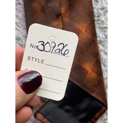 Van Heusen Necktie Mens Silk Brown Orange Plaid Stain Resistant Career