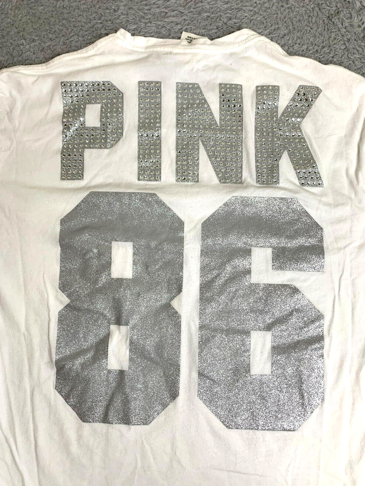 Victoria’s Secret Shirt Womens Extra Small White Oversized Silver Bling 86 Dog