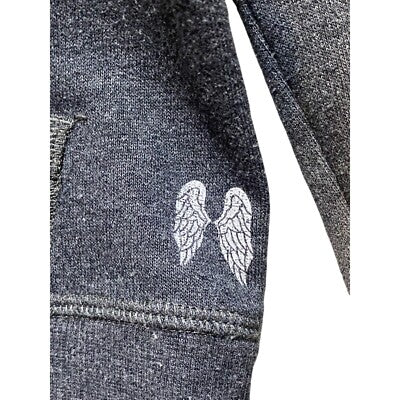 Cozy vibes await with this Victoria's Secret lounge set, perfect for relaxing in style! This set includes a comfortable gray hoodie and matching shorts, both adorned with eye-catching sequin details. The hoodie features a full zip front with a signature angel wing charm, a cozy hood, and sporty white stripes on the sleeves. The shorts boast a comfortable fit with the Victoria's Secret logo down the side. This set is ideal for lounging at home, running errands, or a casual weekend getaway.
