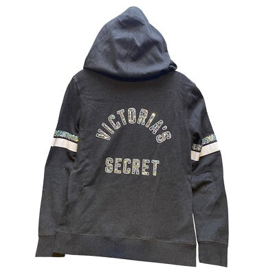 Victoria's Secret Hoodie Jogger Set Bling Spell Out Sequins Athleisure Gray