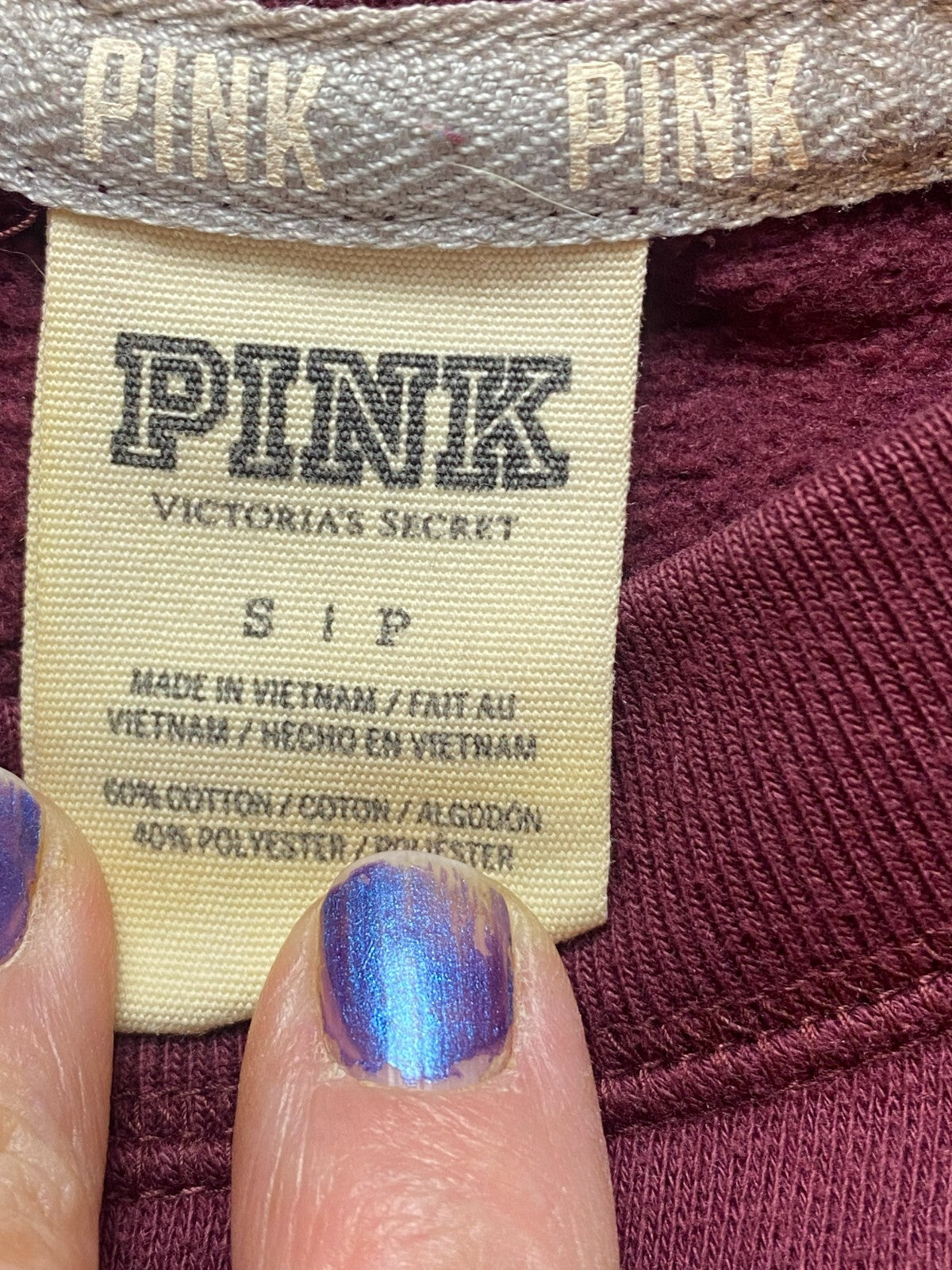 Victoria's Secret PINK Sweatshirt Womens Small Maroon Oversized Pockets Sweater