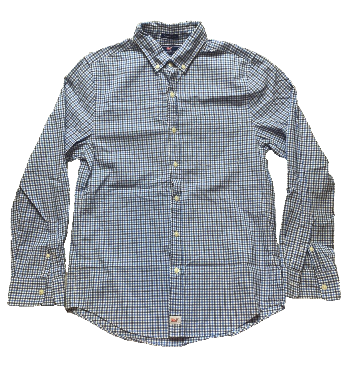 Vineyard Vines Shirt Adult Small Checkered Saltwater Wash Slim Murray Whale Mens