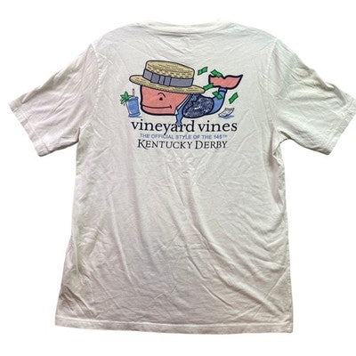 Keywords: Vineyard Vines, Kentucky Derby, Graphic Tee, T-Shirt, Womens, Size L, Pocket Tee, Preppy, Casual, Horse Racing, Derby Day, Summer Tee, White T-Shirt, Cotton