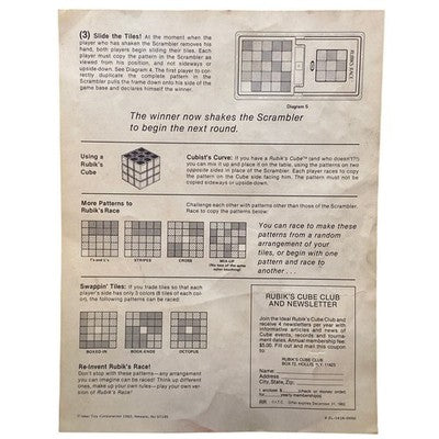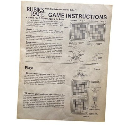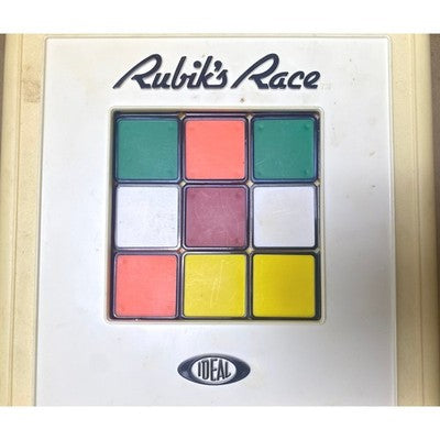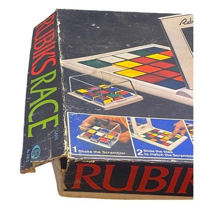 Keywords: Rubik's Race, Ideal Toys, Board Game, Puzzle Game, Vintage Game, Retro Game, Two Player Game, Family Game, Matching Game, Brain Teaser, Fastest Game, Rubik's Cube, Color Matching, Ages 7+, Tabletop Game
