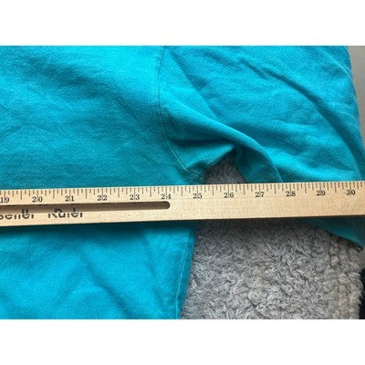 Keywords: graphic tee, mock neck, long sleeve, teal shirt, coastal, beachwear, travel shirt, souvenir, casual top, retro graphic, sportswear, laid back, vacation