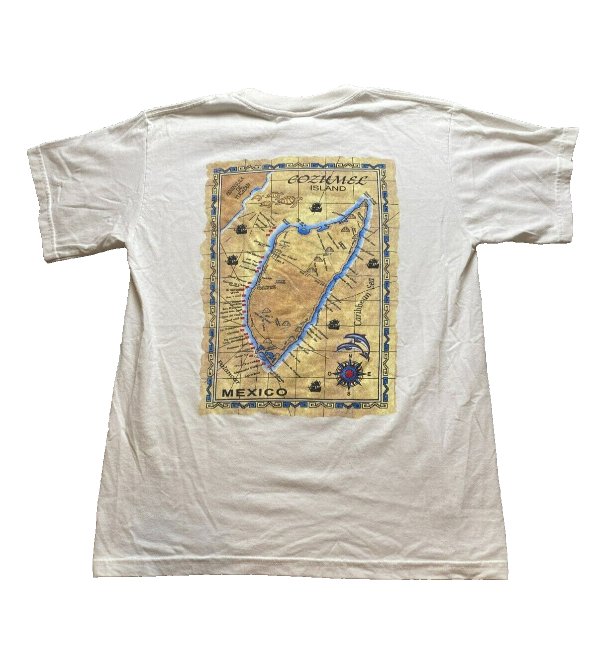 Vintage Cozumel Island Mexico Shirt Womens Large White Big Map La Iguana 2 Sided