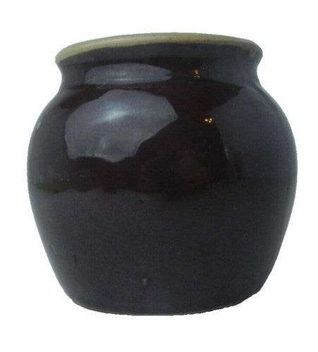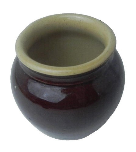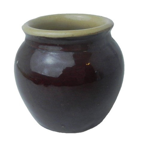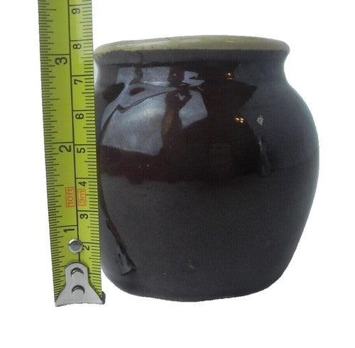 Vintage Crock Bean Pot - Brown Glaze - USA Pottery - 3" Tall