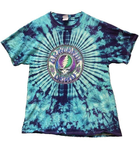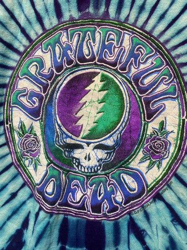 Vintage Grateful Dead Shirt Womens Large Blue Teal Tie Dye Skull Y2K Grunge Lady