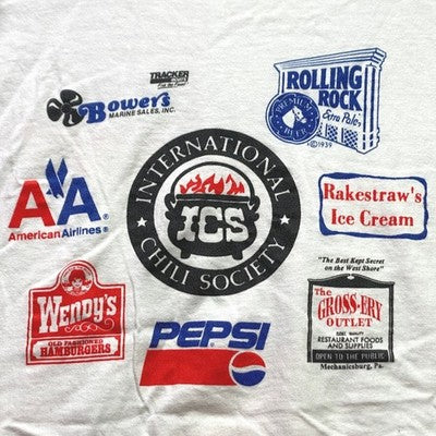 Score a winning look with this vibrant white Pennsylvania State Chili Cookoff t-shirt, celebrating the KIPONA event! Bold graphics featuring a fiery chili pepper donning a sombrero, surrounded by flames and the event name, instantly evoke a fun and spirited vibe. The back showcases a medley of sponsor logos including American Airlines, Wendy's, Pepsi, and Rolling Rock, hinting at a lively festival atmosphere. This shirt is perfect for embracing casual comfort at backyard barbecues, sporting events, or simply enjoying a relaxed day out.