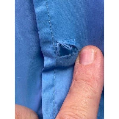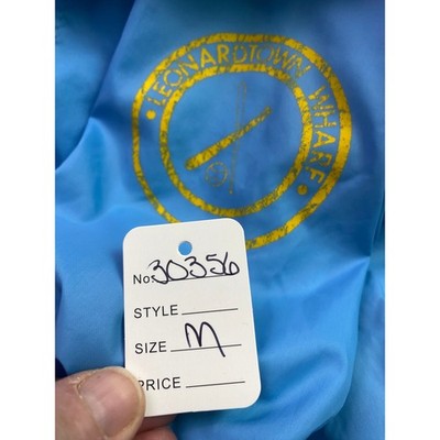 Step back in time with this vintage Swingster jacket, a true piece of Americana. This light blue jacket evokes a sense of nostalgia and effortless style, perfect for adding a touch of retro charm to any outfit. Featuring a unique Leonardtown Wharf graphic on the front, this eye-catching detail immediately adds personality and character. The snap-front closure offers versatility, allowing you to wear it open for a relaxed look or snapped up for added warmth. While it has a small defect in the front, this only adds to its unique vintage appeal. Perfect for casual outings, weekend adventures, or adding a vintage flair to your everyday wardrobe.