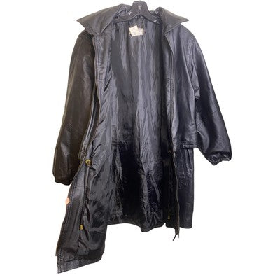 Vintage Venezia Vitale Leather Trench Coat Womens 3XL Full Zip Draw String Black