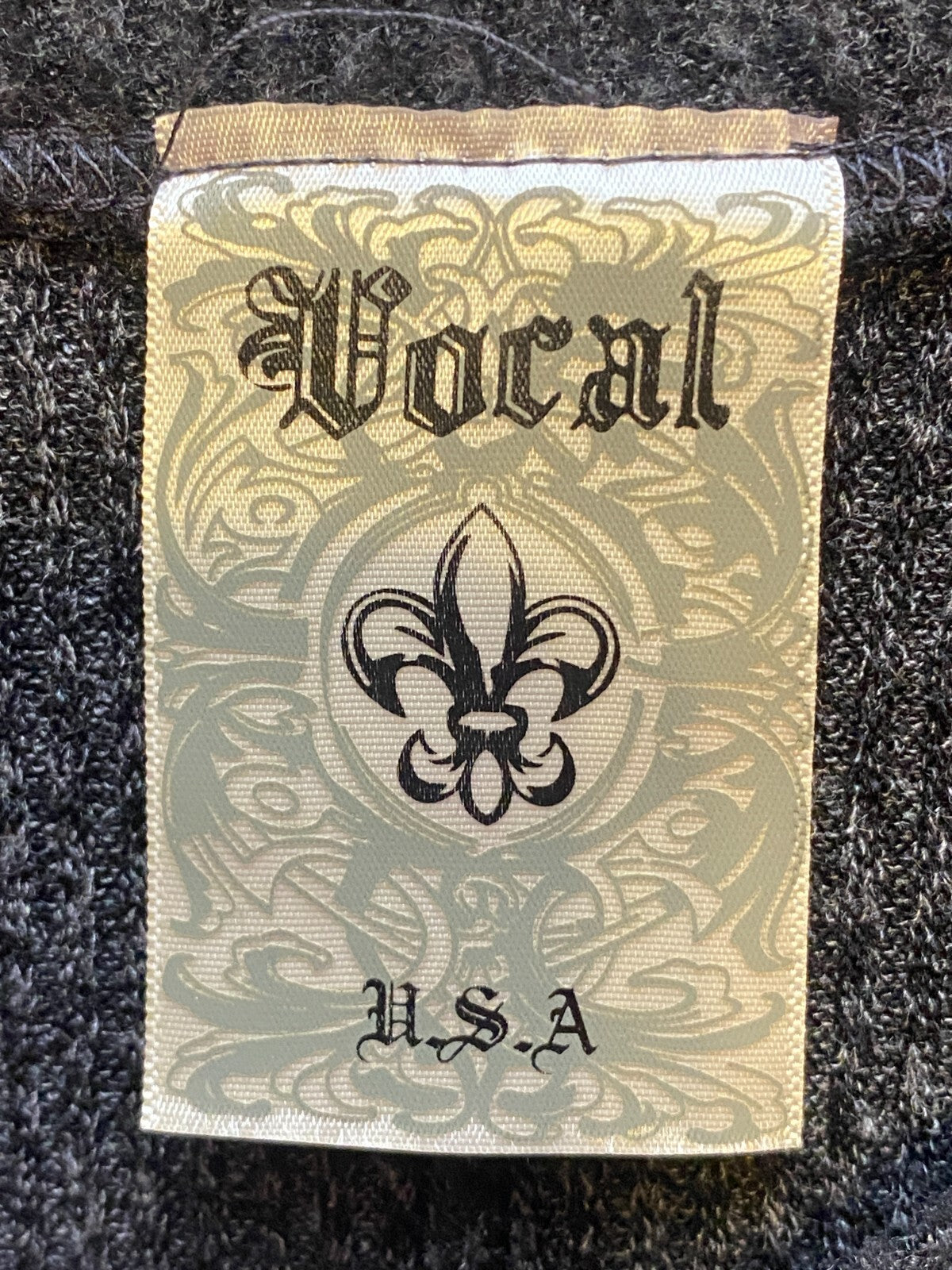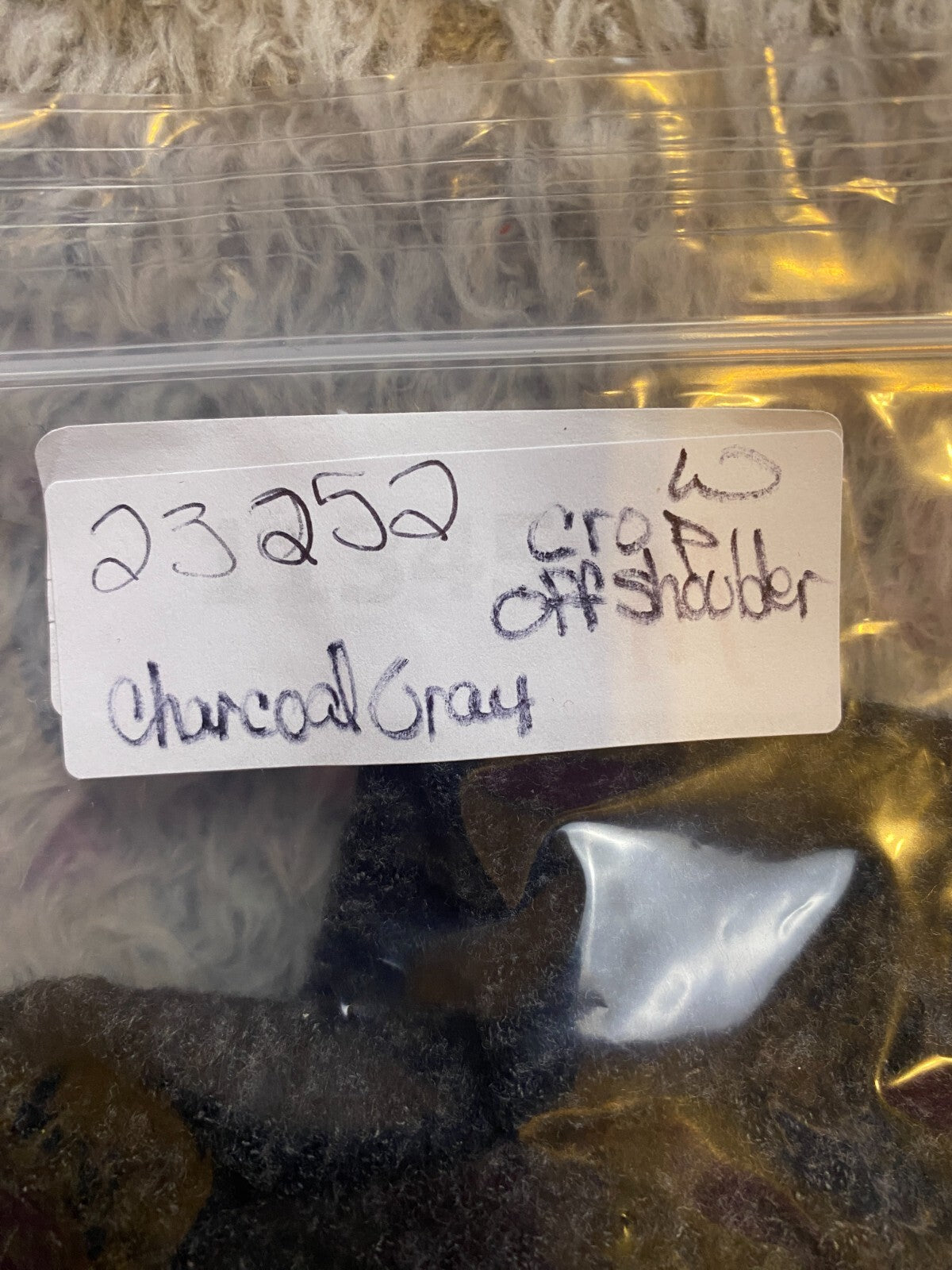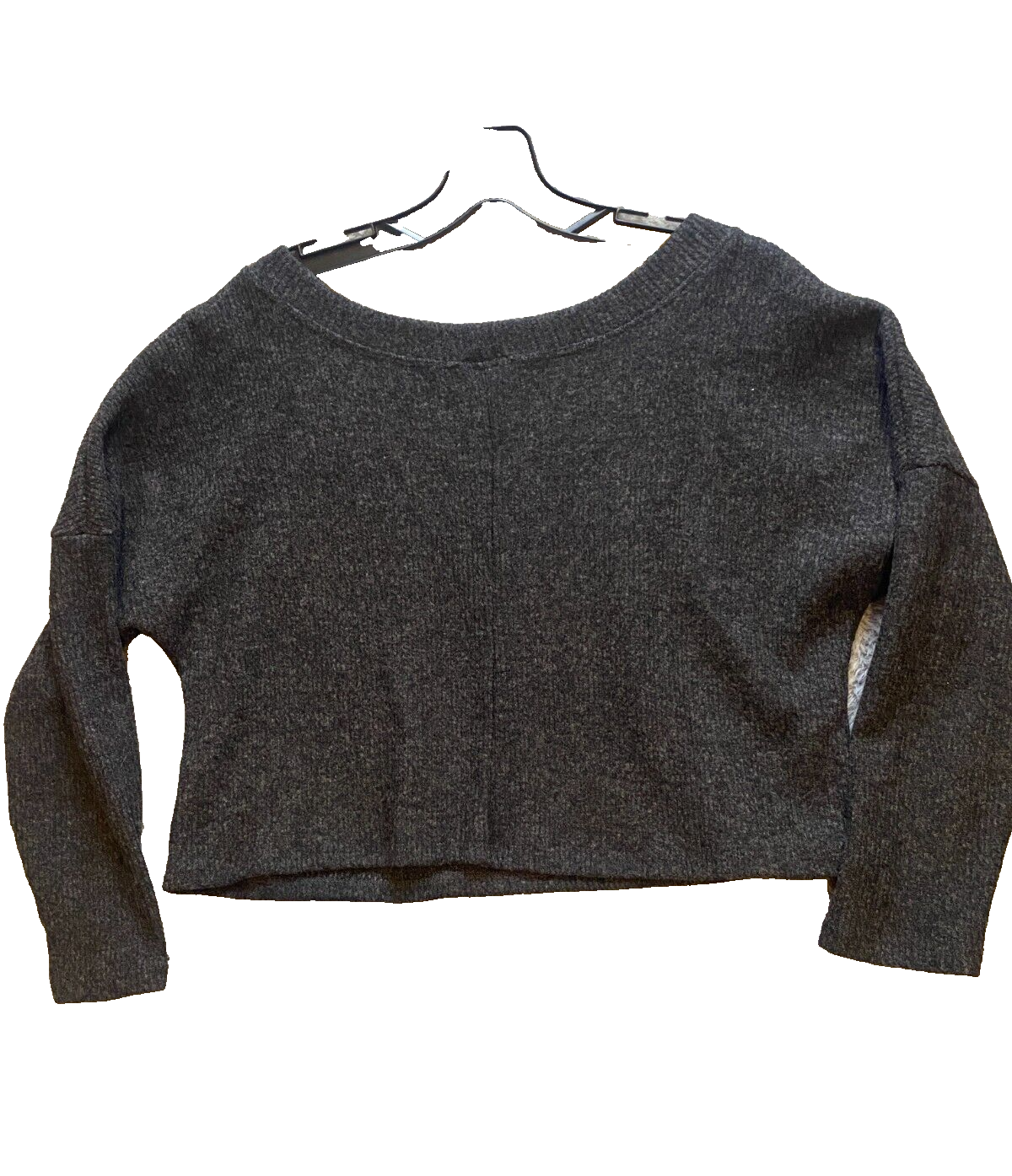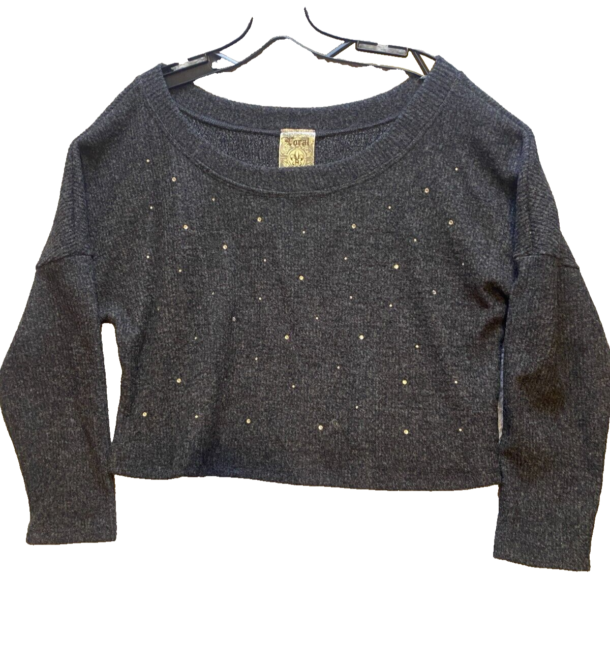 Vocal Sweater Womens Small Charcoal Gray Cropped Off-Shoulder Bling Top NWOT