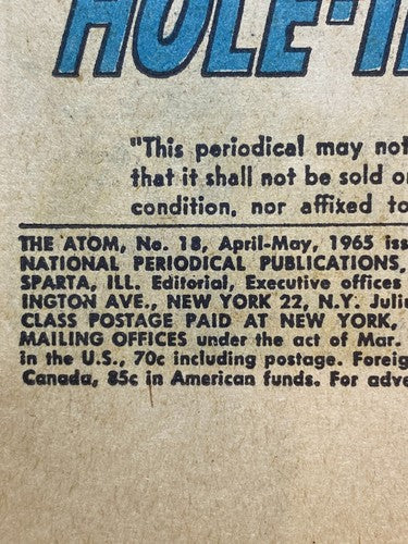 VTG 1965 The Atom Comic Book DC Superman Antique The Smallest Superhero Lawman