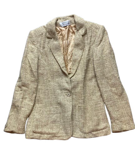 VTG Albert Lewis For Tudor Square Jacket Womens Medium Beige Tweed Career Blazer