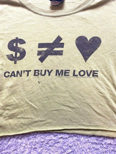 VTG Can't by Me Love Shirt Womens Medium Green Cropped 90s Lennon McCartney Lady