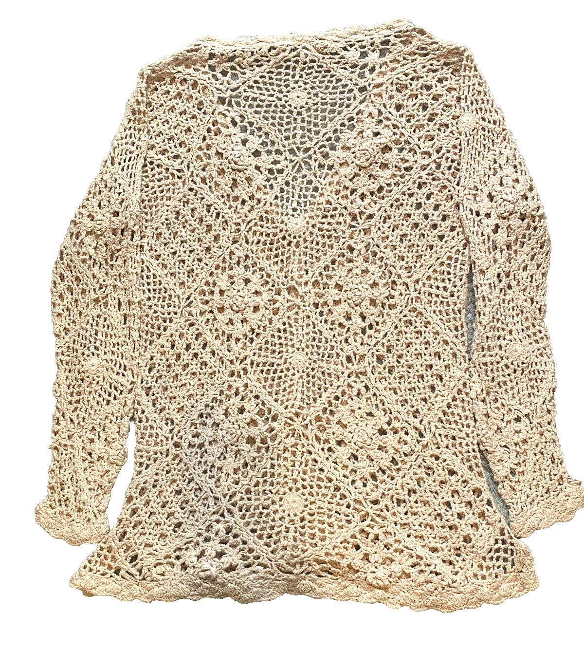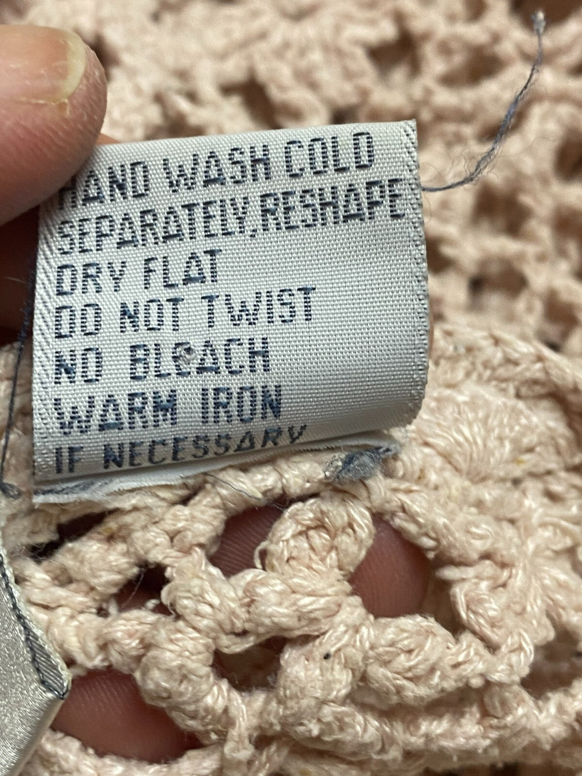 VTG Capacity Sweater Womens Small Pale Peach Crochet Lace Silk Oversized Tunic