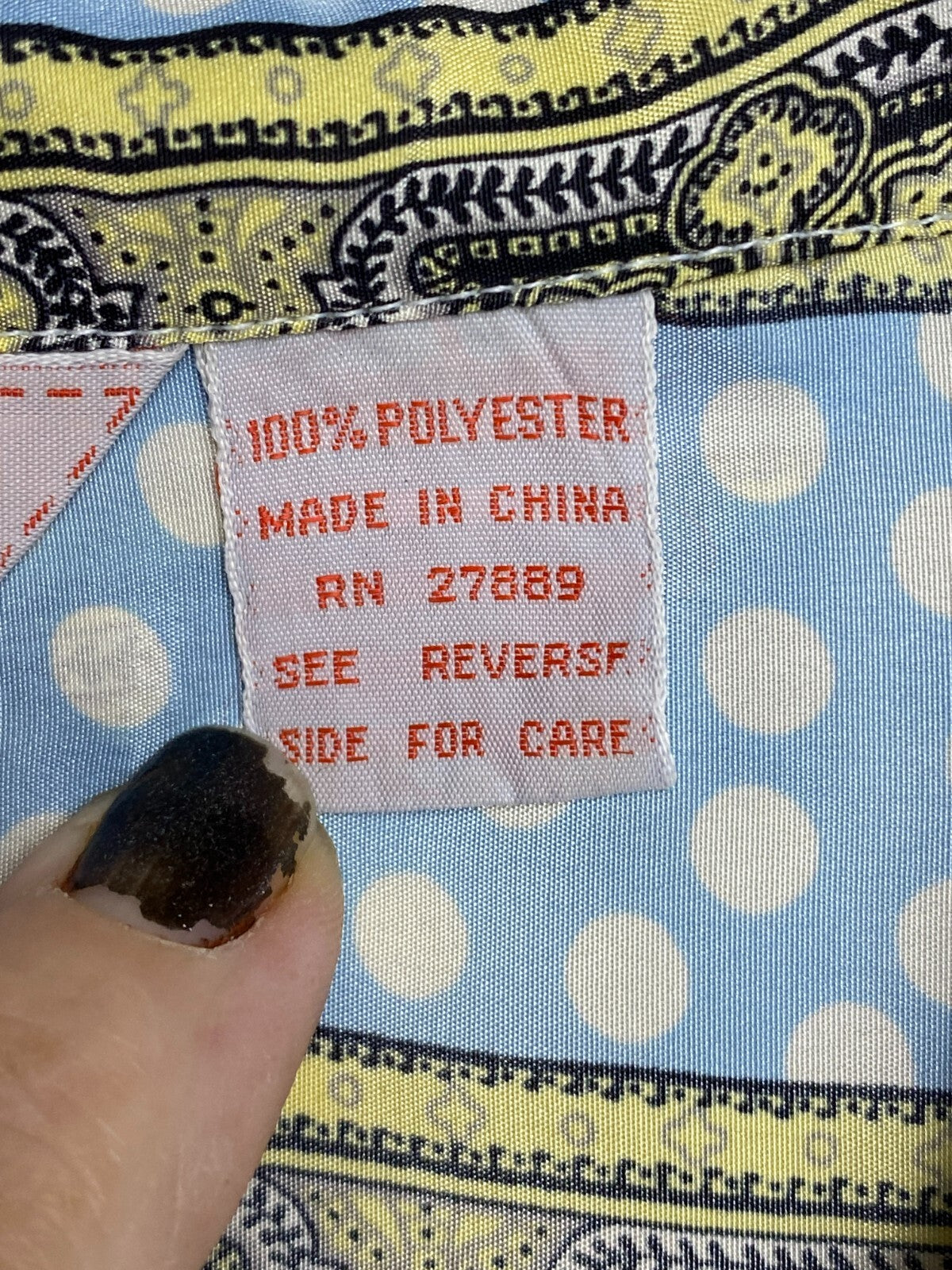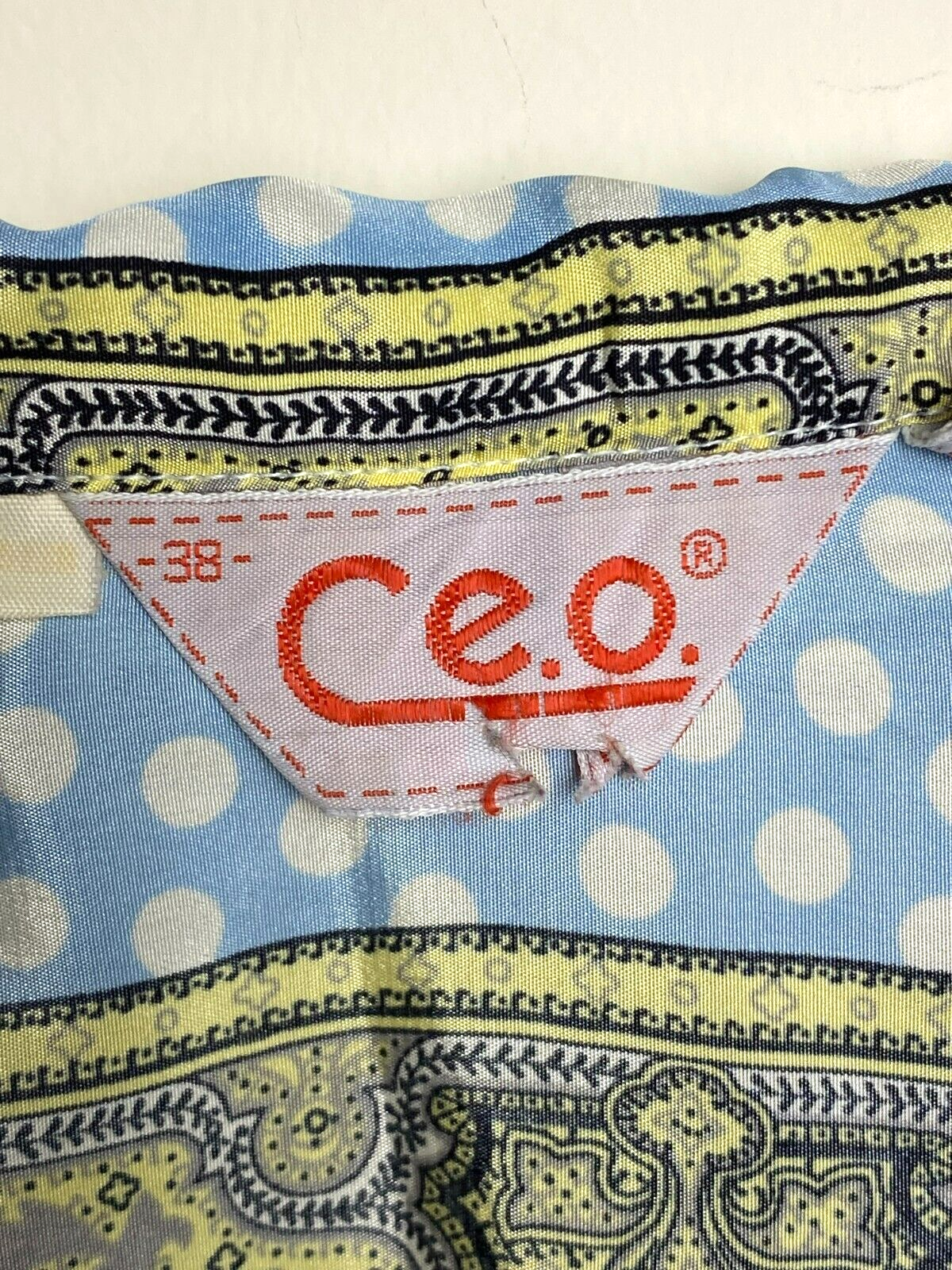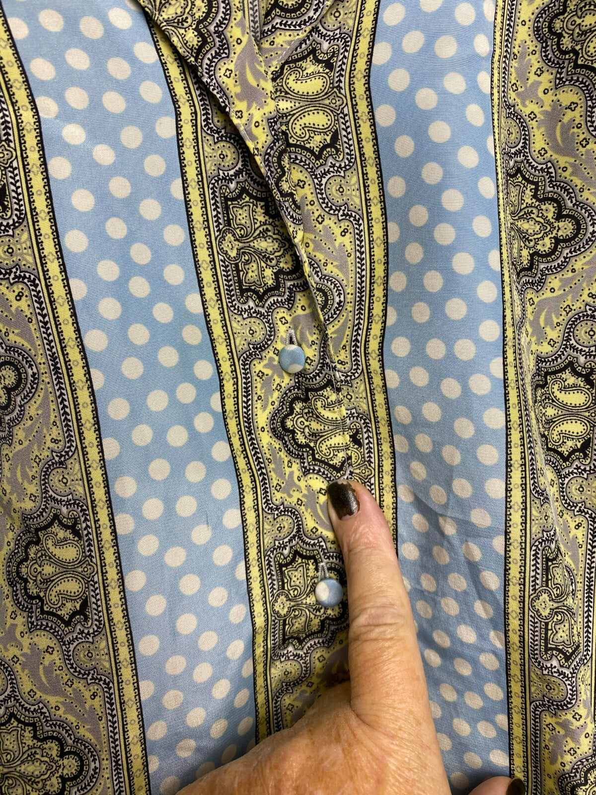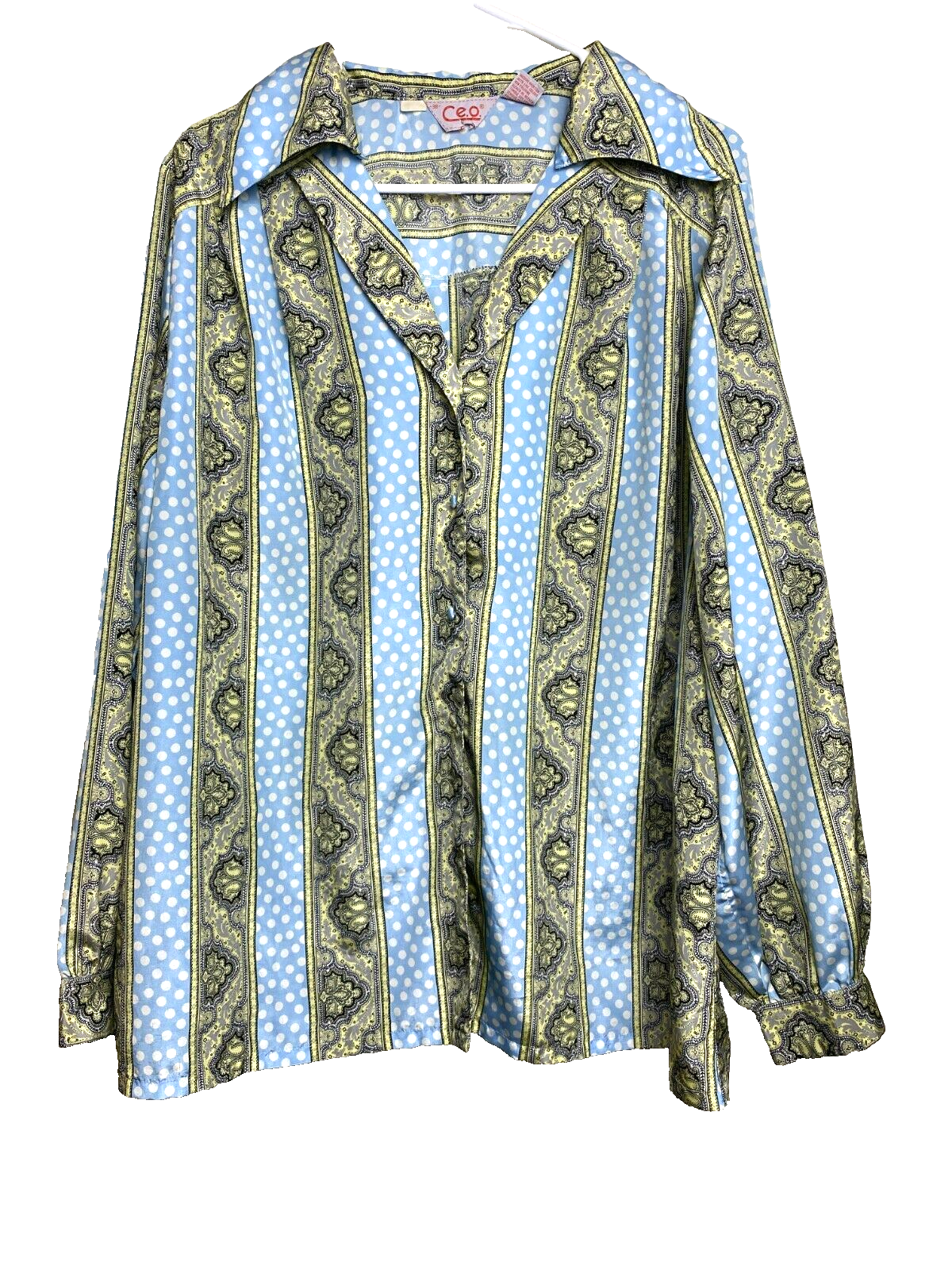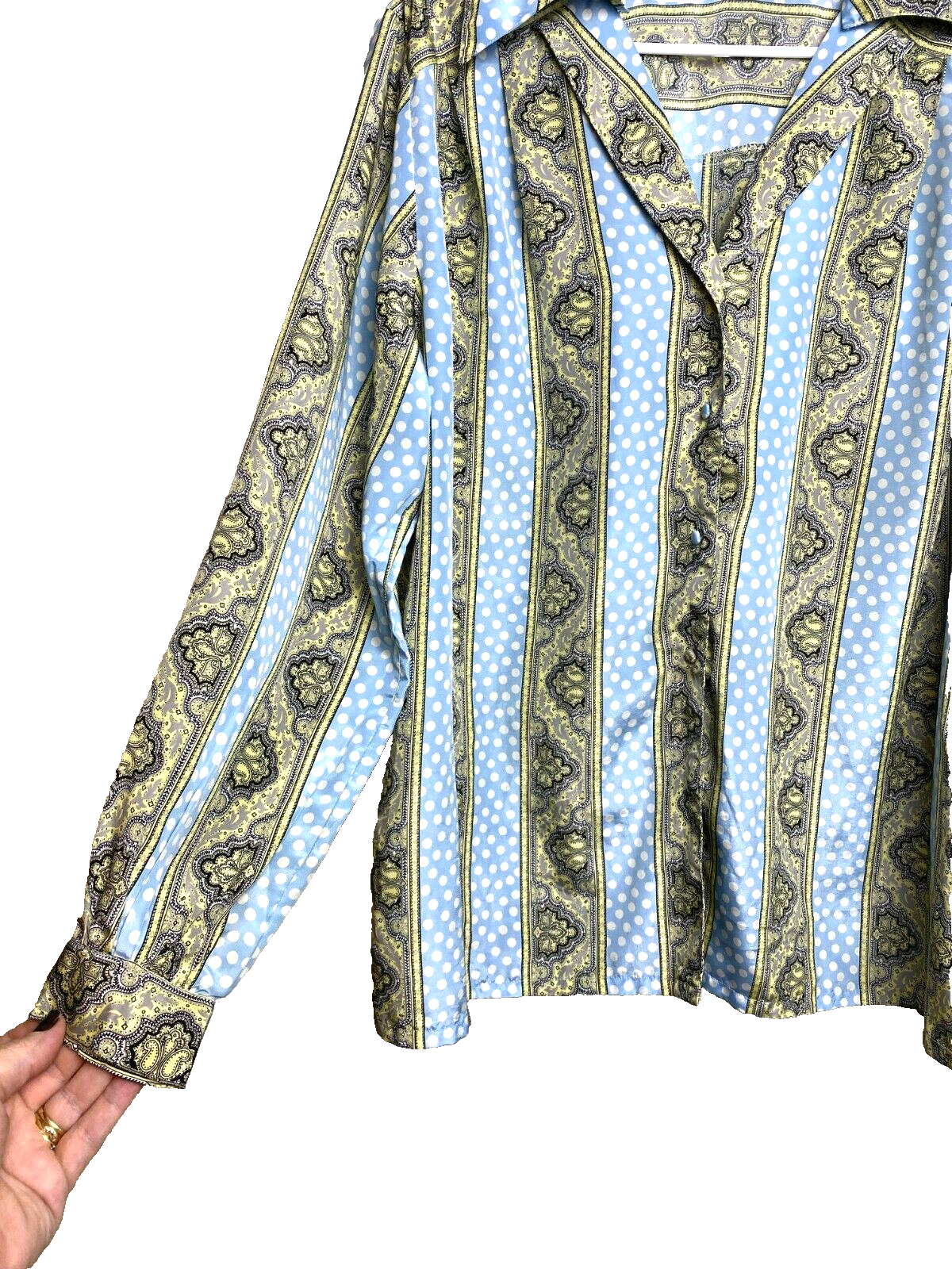 VTG CEO Shirt Womens 38 Light Blue Button Up Polkadots Paisley Hippie Boho 70s