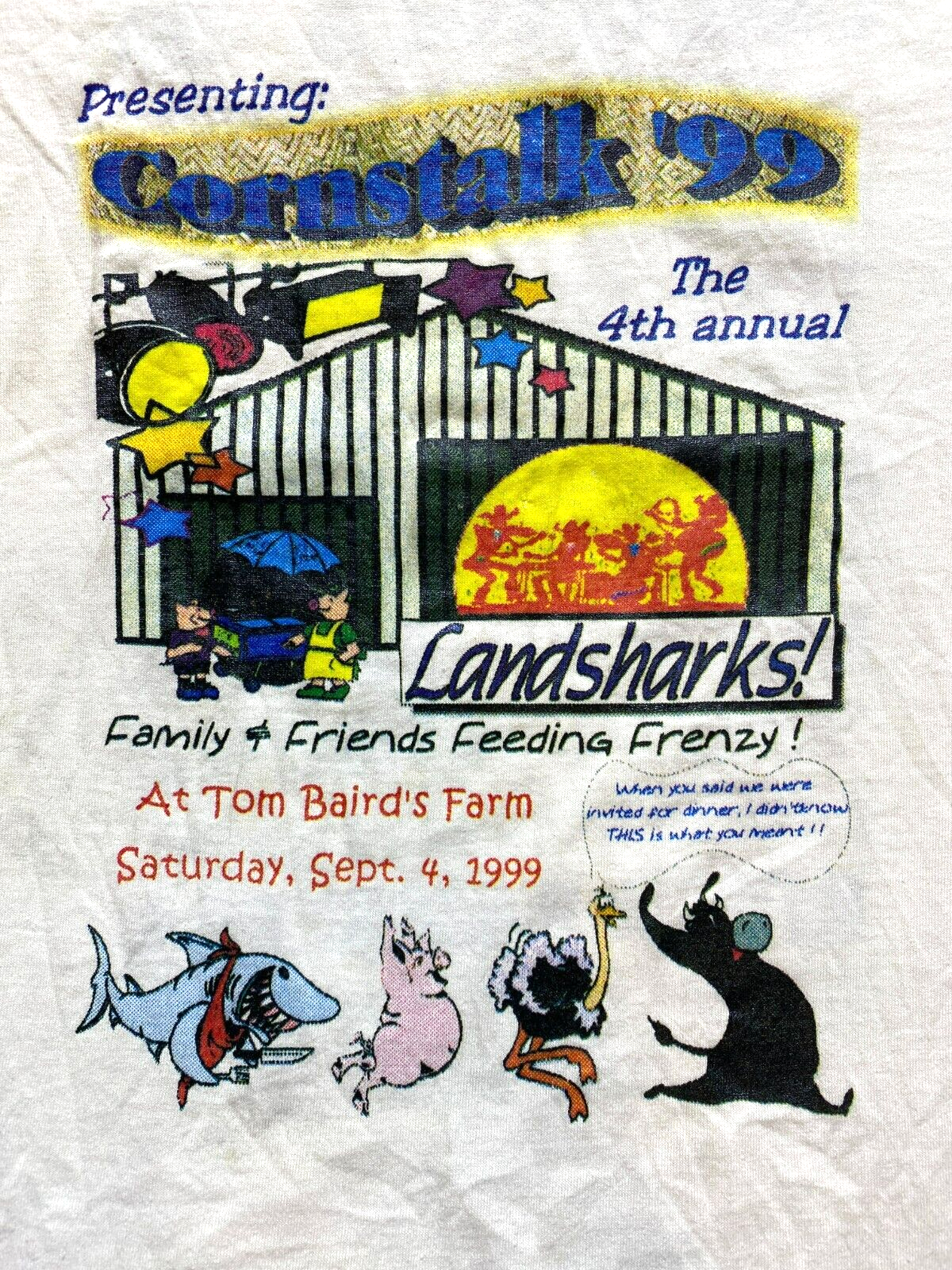 VTG Cornstalk 99 Shirt Adult Large Ivory 4th Annual Landsharks Funny Rock Mens