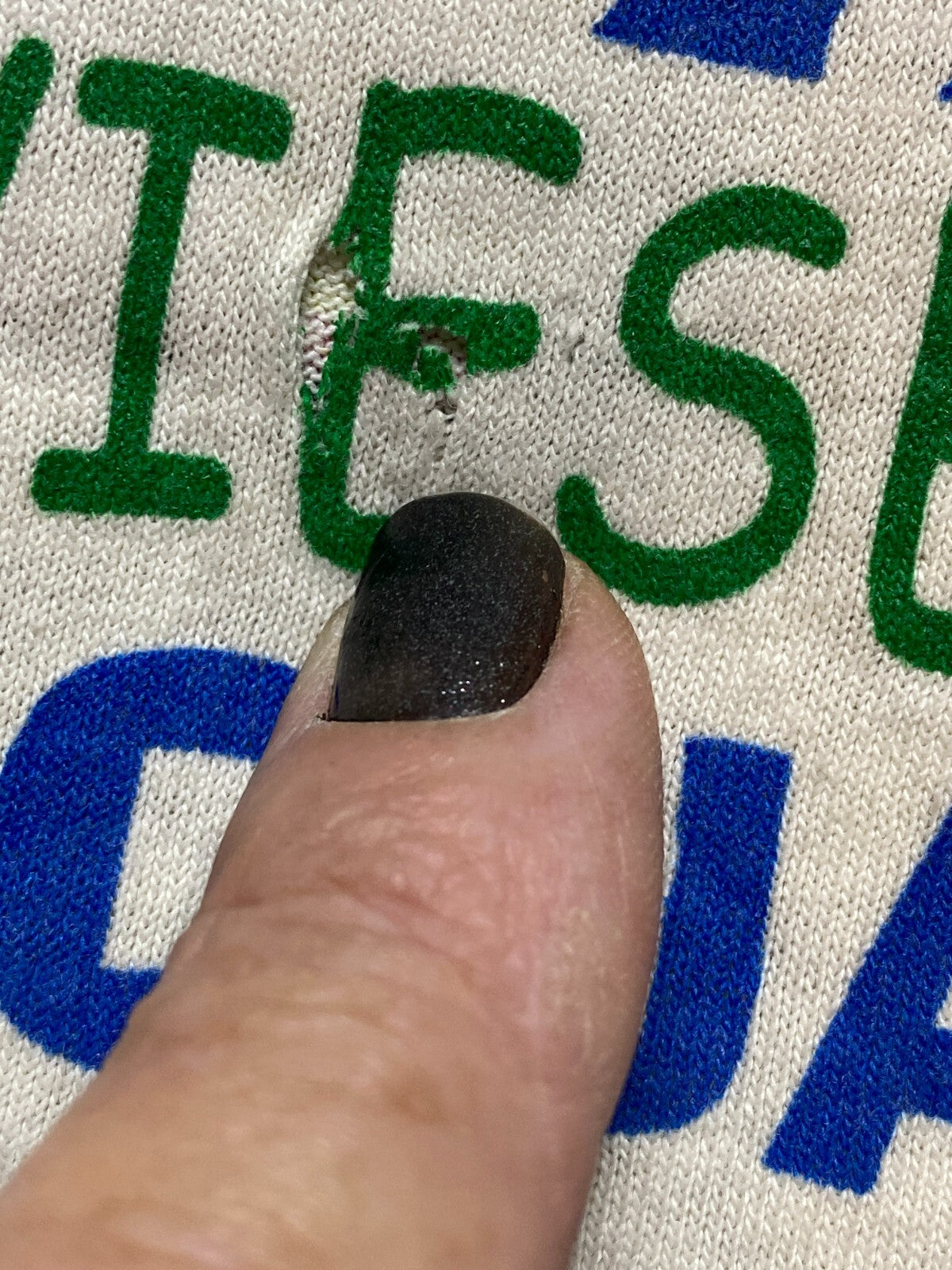If we noticed any damage to this item, stains, holes, etc... it will be shown in photos or noted in the description or title on this listing.