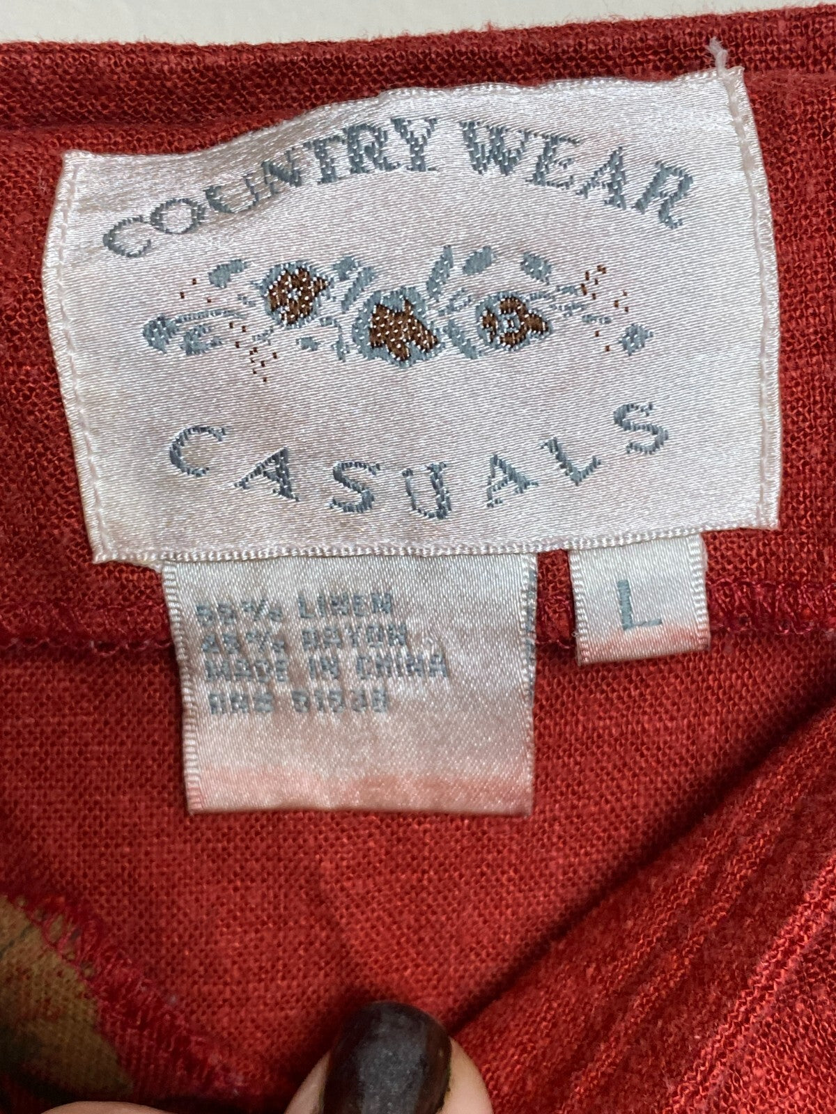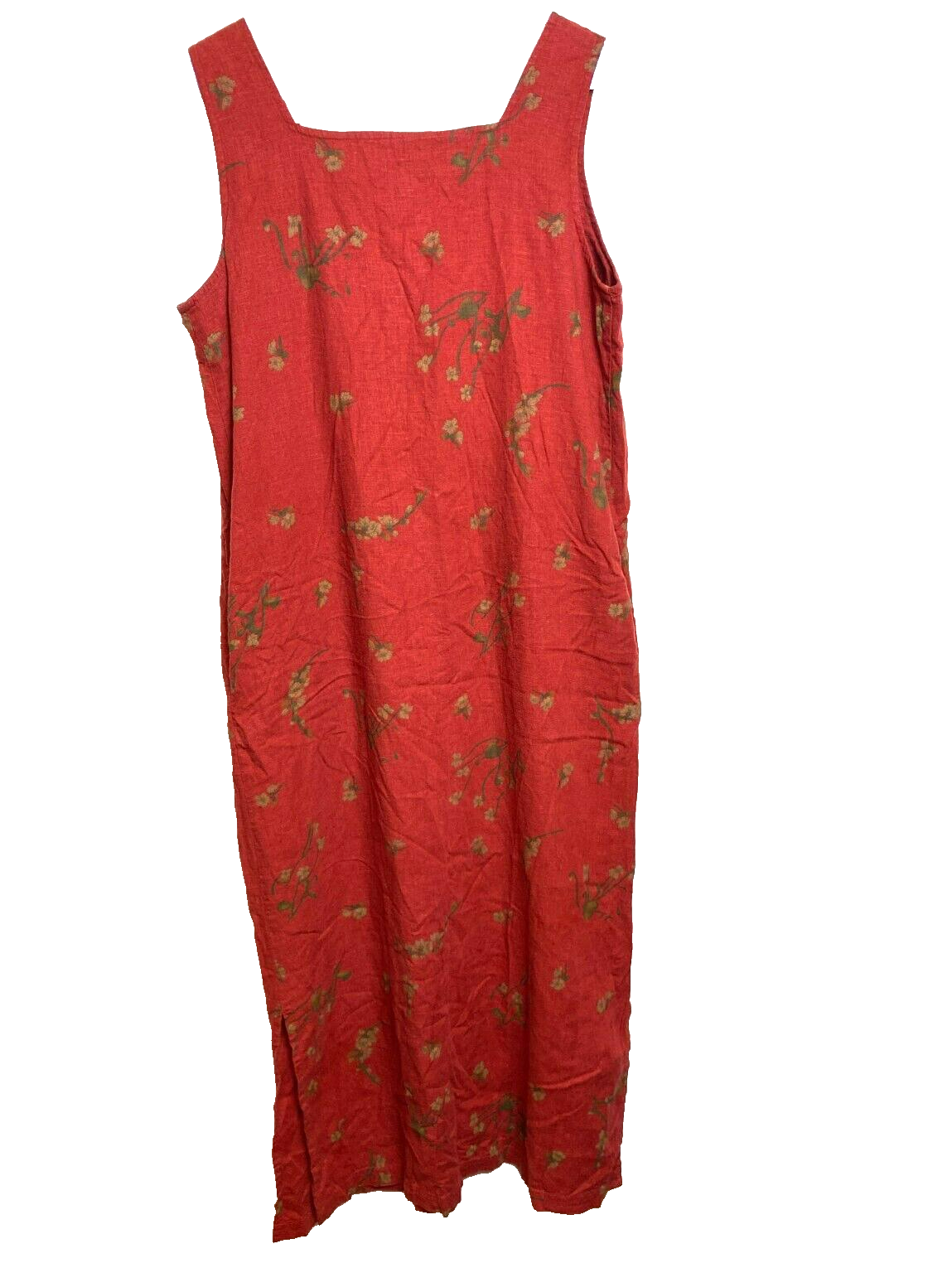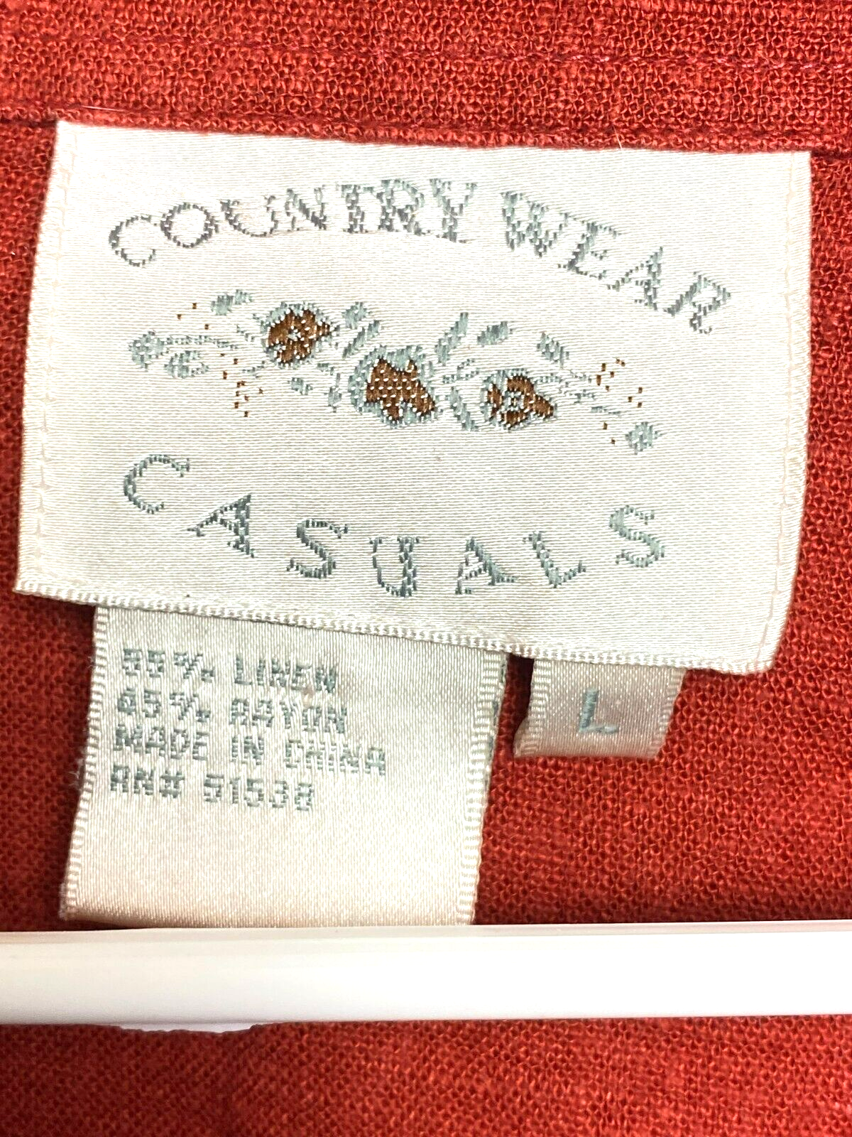 VTG Country Wear Casuals Dress W/ Jacket Womens Large Rustic Red Linen Rayon