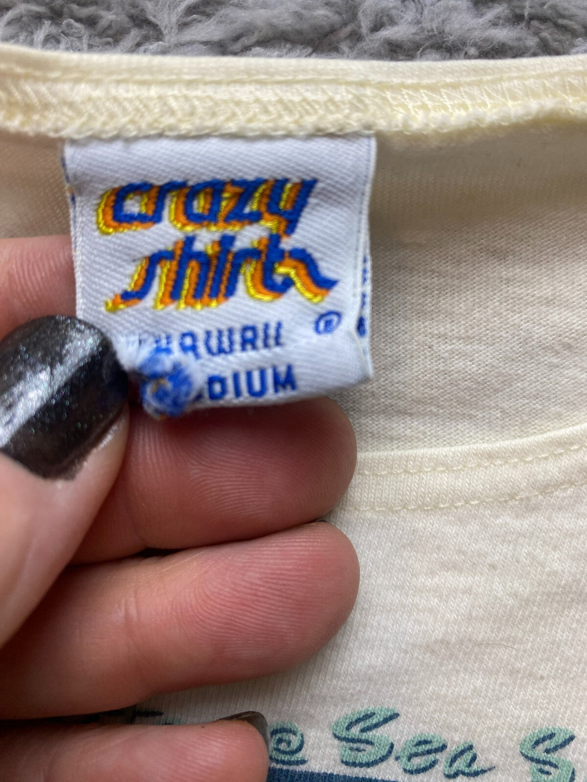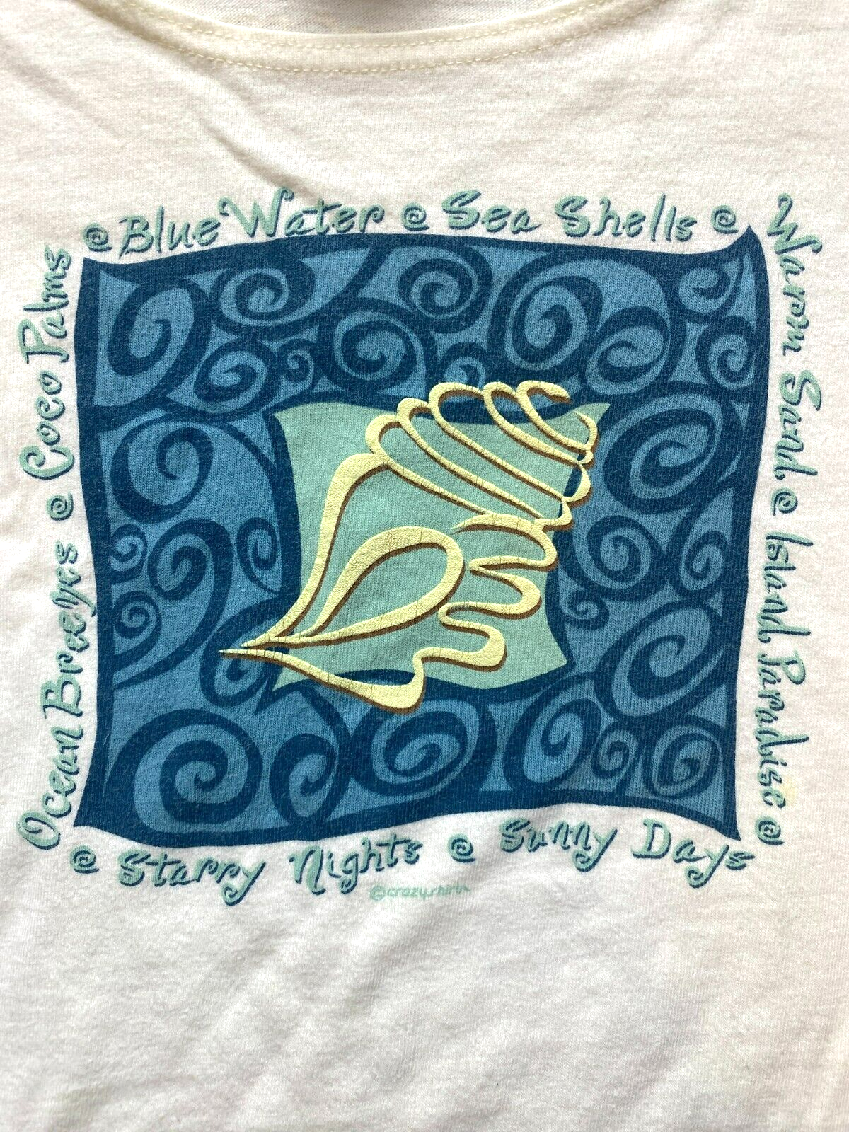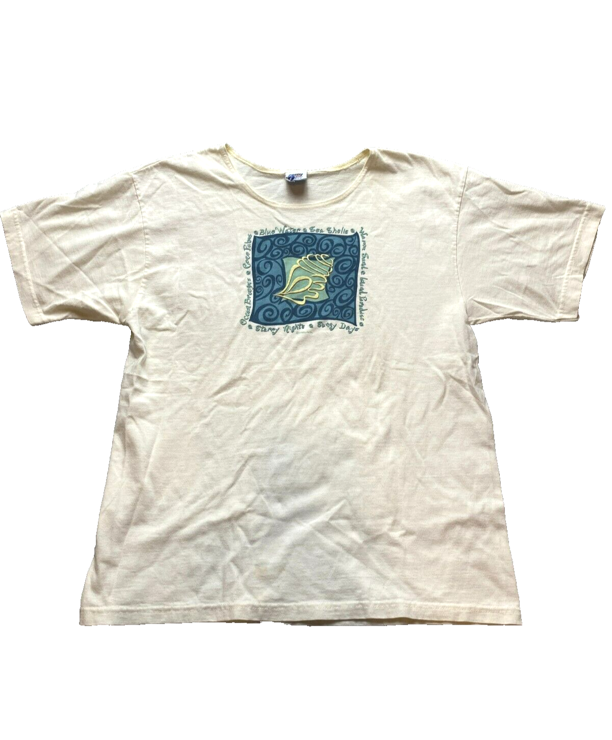VTG Crazy Shirts Womens Medium Pale Yellow Hawaiian Aloha Sea Shells Oversized