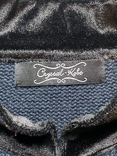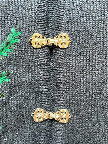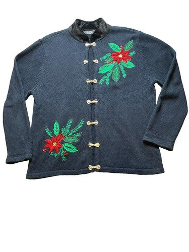 VTG Crystal Kobe Sweater Womens Medium Navy Blue Poinsettia Christmas Cardigan