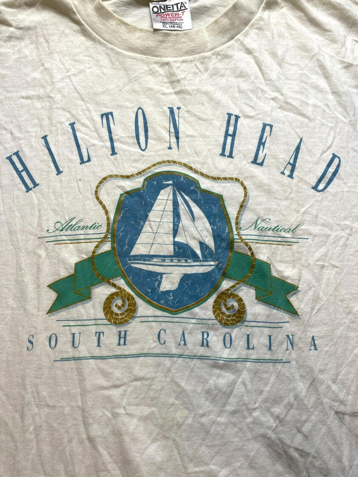 VTG Hilton Head Shirt Adult Extra Large Beige Single Stitch Sailing Boat 90s Men