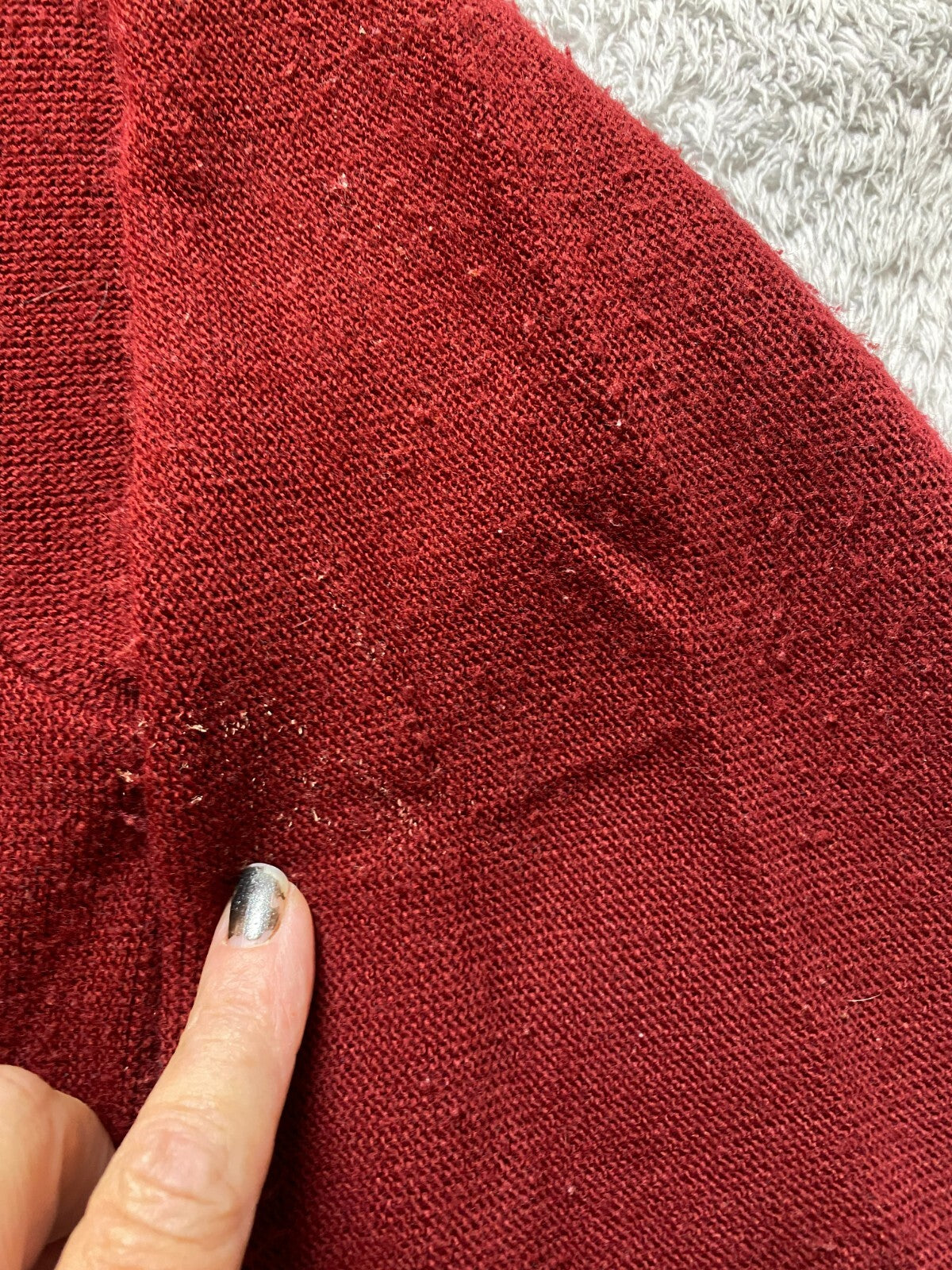 If we noticed any damage to this item, stains, holes, etc... it will be shown in photos or noted in the description or title on this listing.