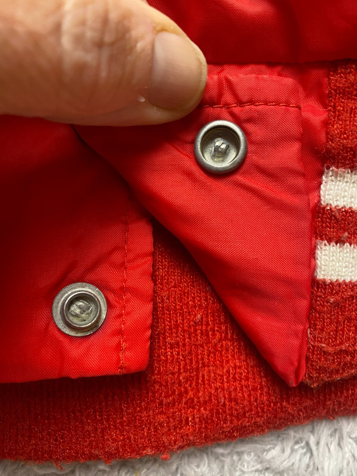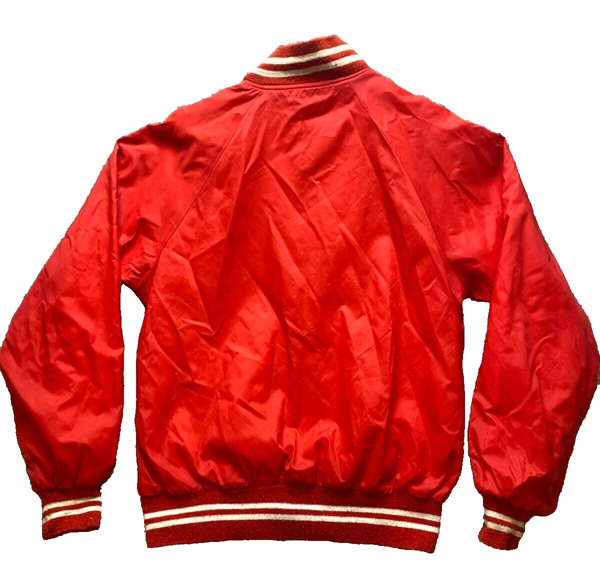 VTG Jacket Adult Medium Red Varsity Snaps Front Pockets Stripes Lined USA 70s