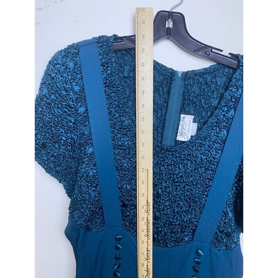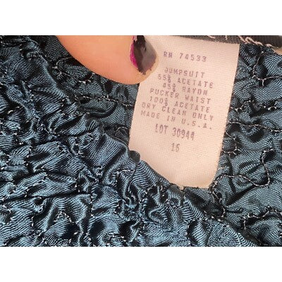 Keywords: jumpsuit, wide leg jumpsuit, teal jumpsuit, vintage jumpsuit, dressy jumpsuit, special occasion, cocktail party, evening wear, size 16, pucker texture, suspenders, retro, Jeffrey & Vara