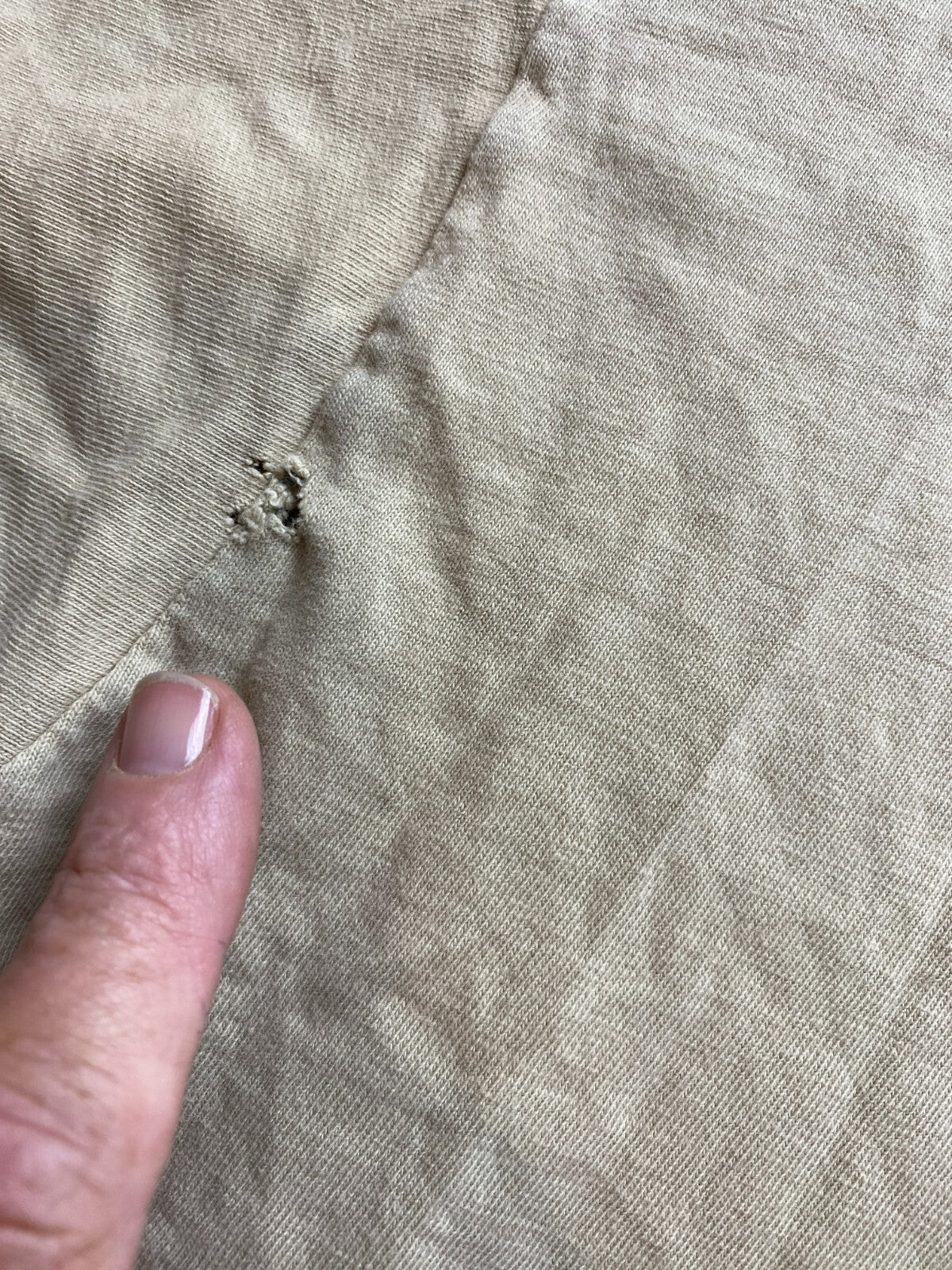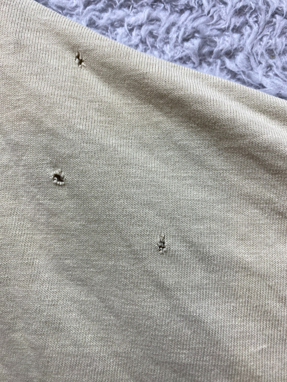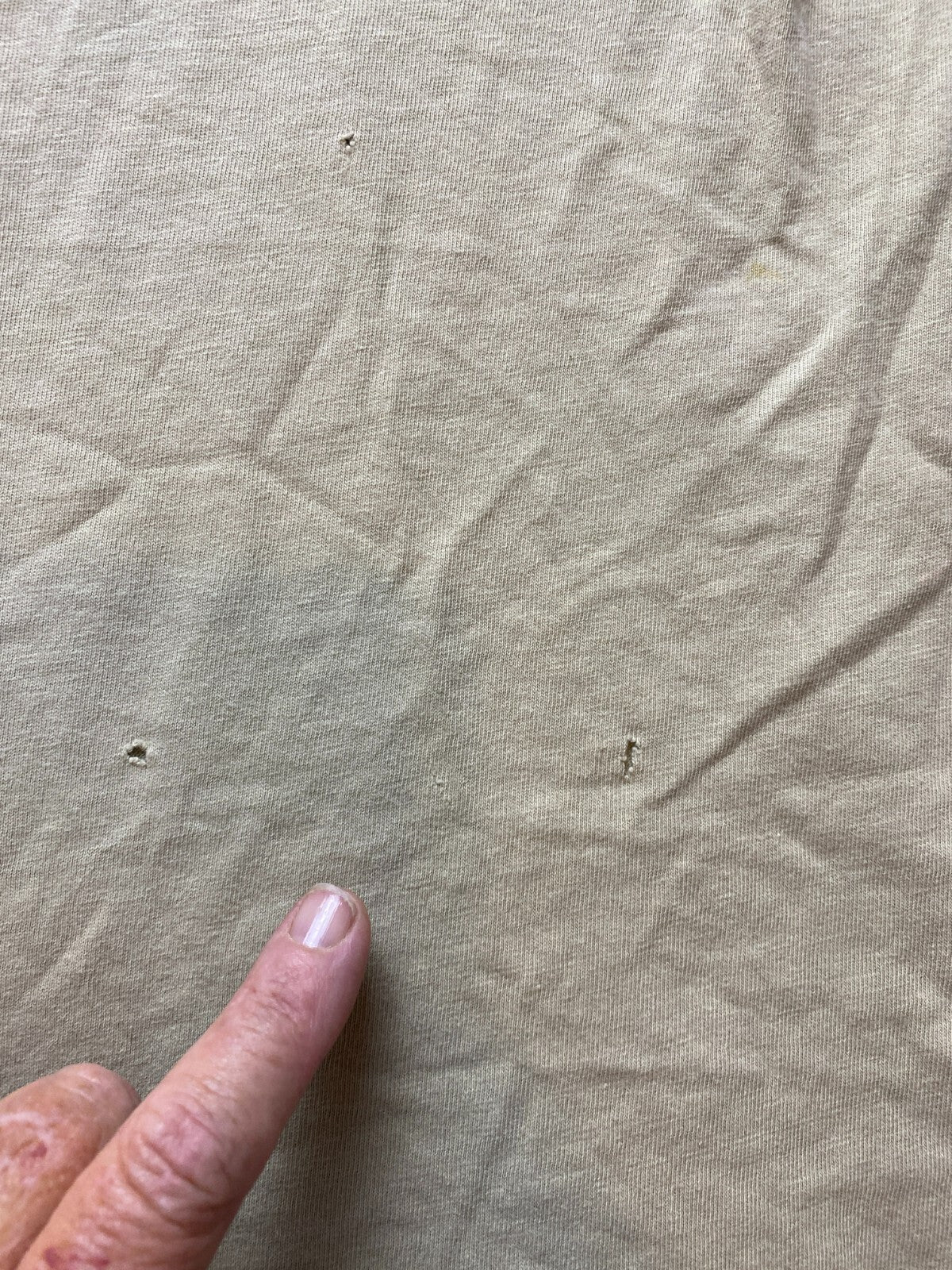 If we noticed any damage to this item, stains, holes, etc... it will be shown in photos or noted in the description or title on this listing.