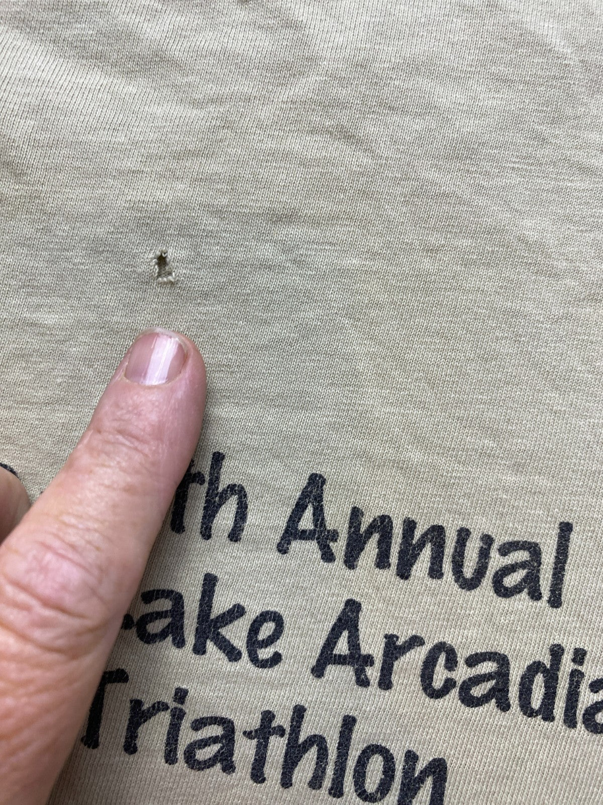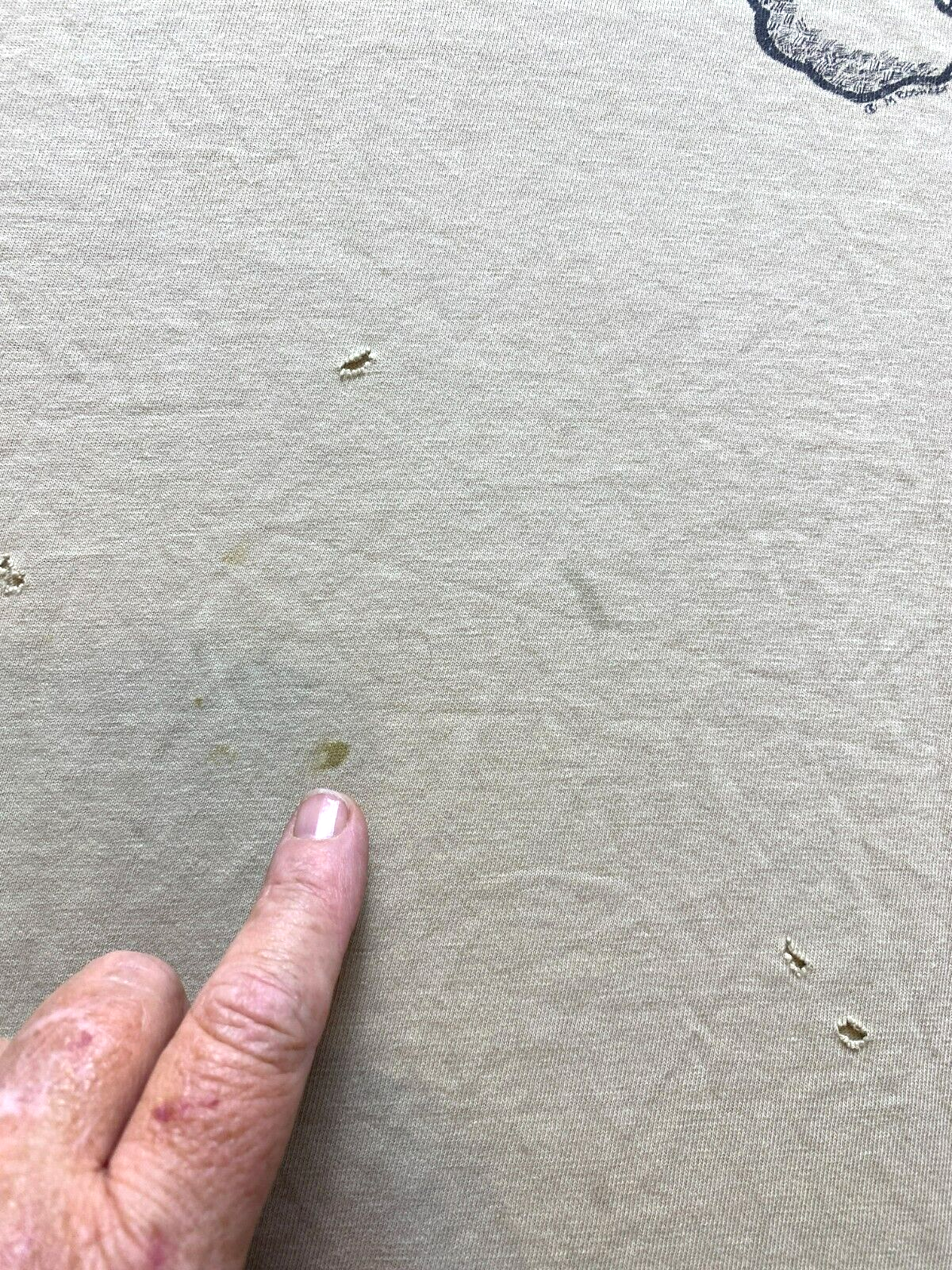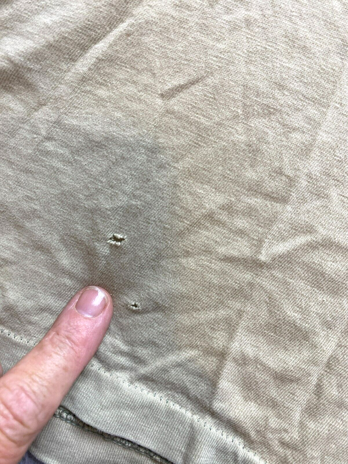 If we noticed any damage to this item, stains, holes, etc... it will be shown in photos or noted in the description or title on this listing.